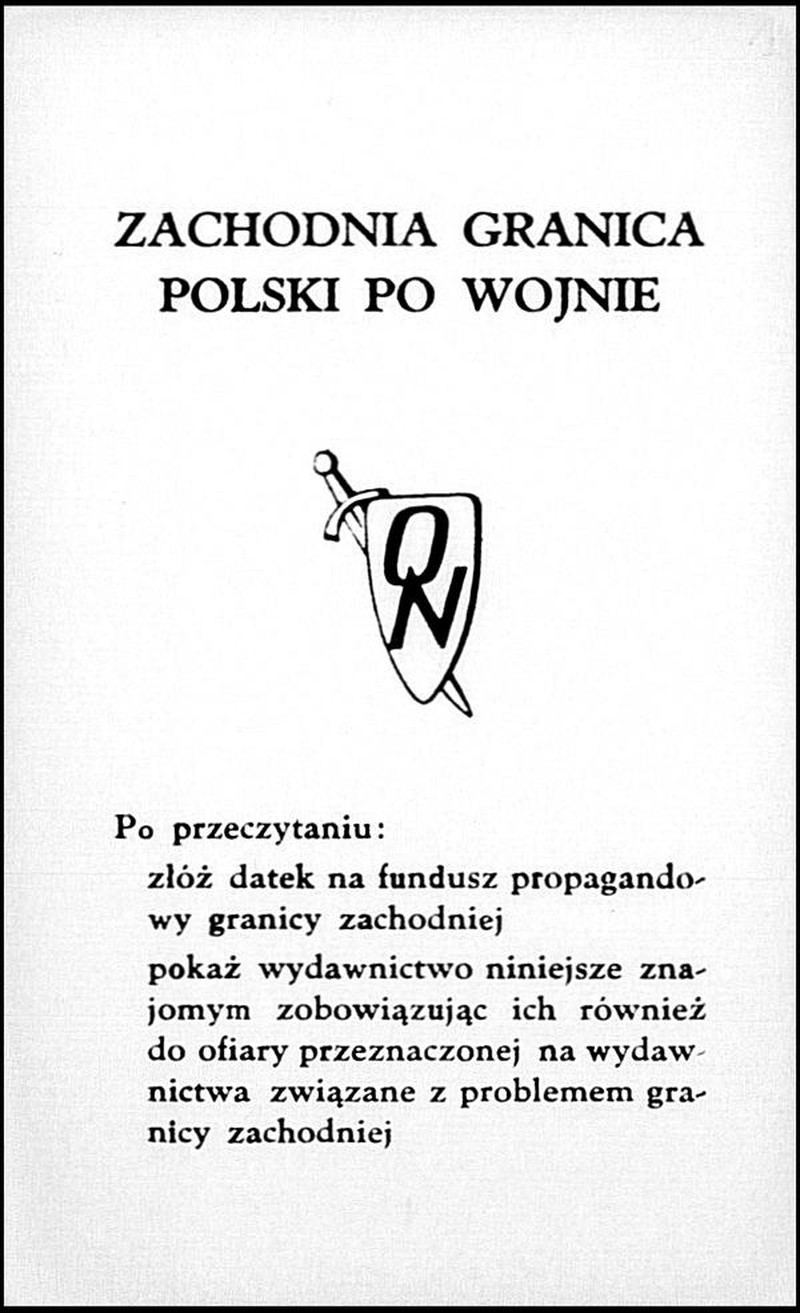 - Stronnictwo Narodowe (1928- ) DBN, Narodowa demokracja - ideologia DBN, Wydawnictwa nielegalne DBN, Polska (część zachodnia) - osadnictwo DBN, Polska (część zachodnia) - polityka DBN, Polska (część zachodnia) DBN, Polska - granice - Niemcy DBN