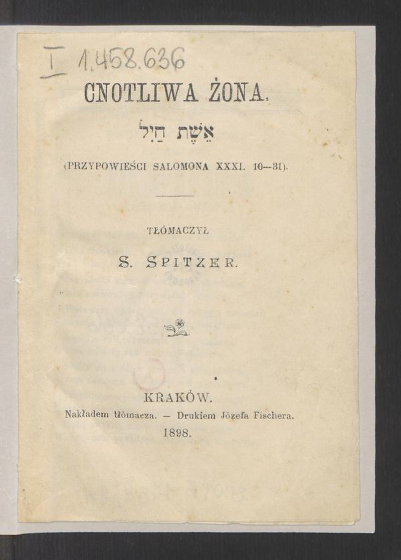 - Kraków : nakł. tłóm., 1898 ([Kraków] : Józef Fischer).
