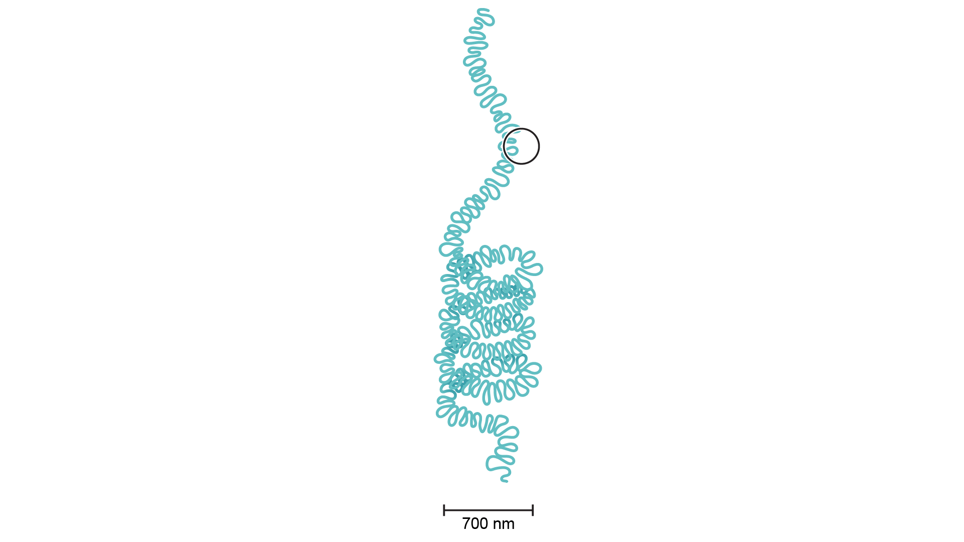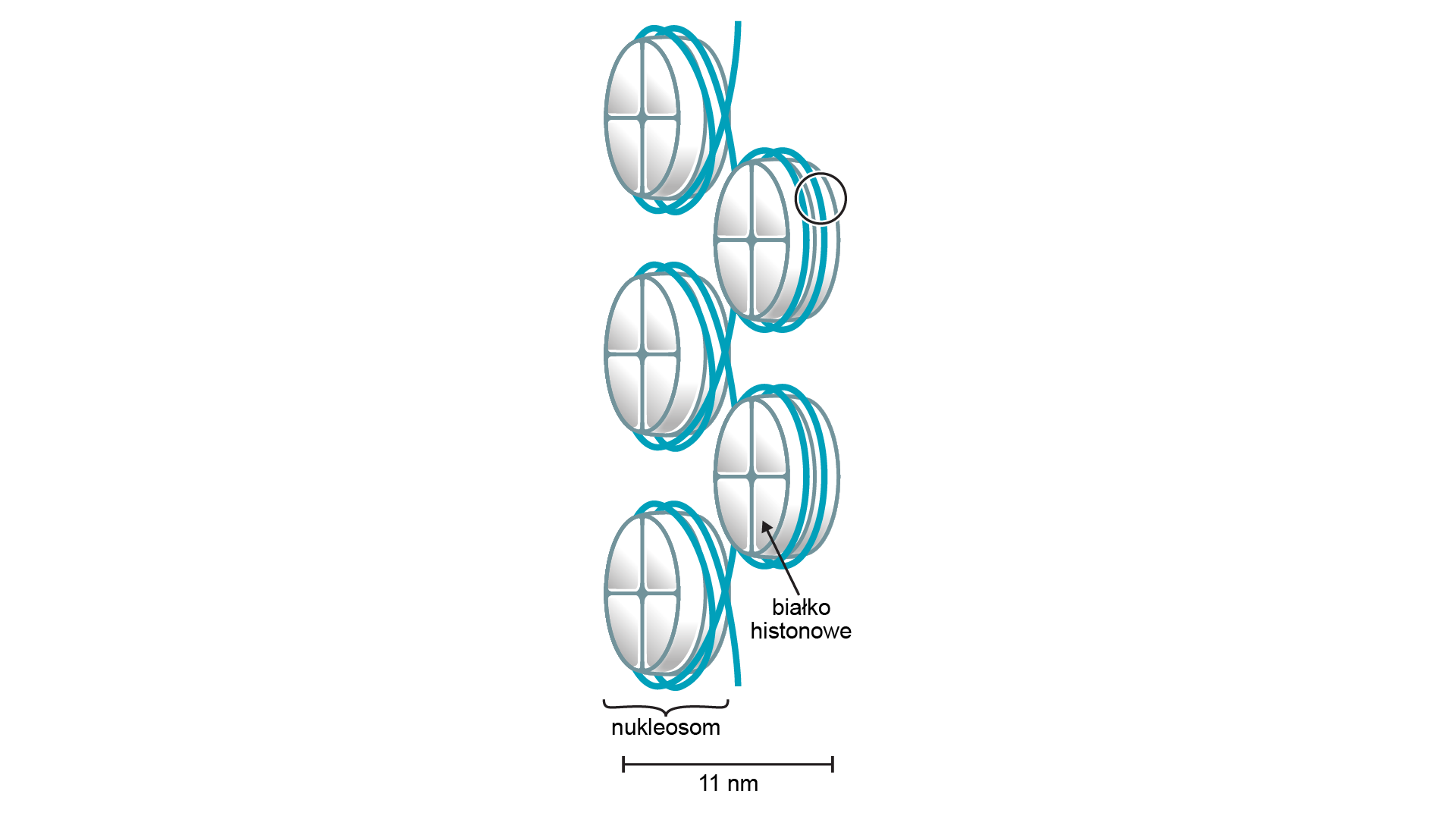 Włókno o średnicy 300 nm będące jedną zespiralizowaną cząsteczką DNA tworzy chromatydę.