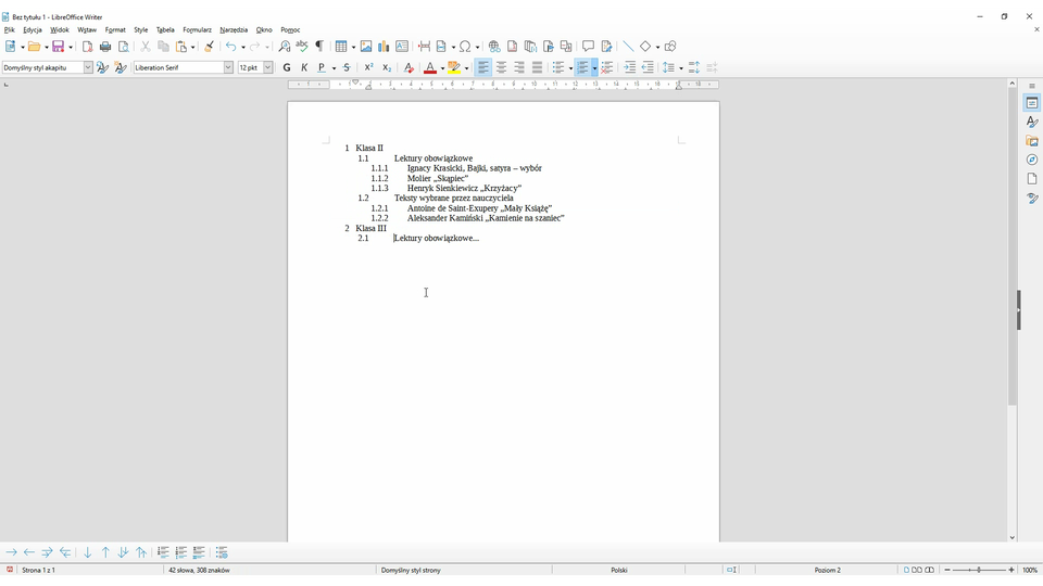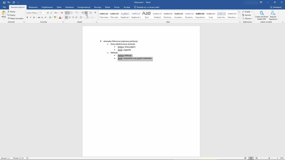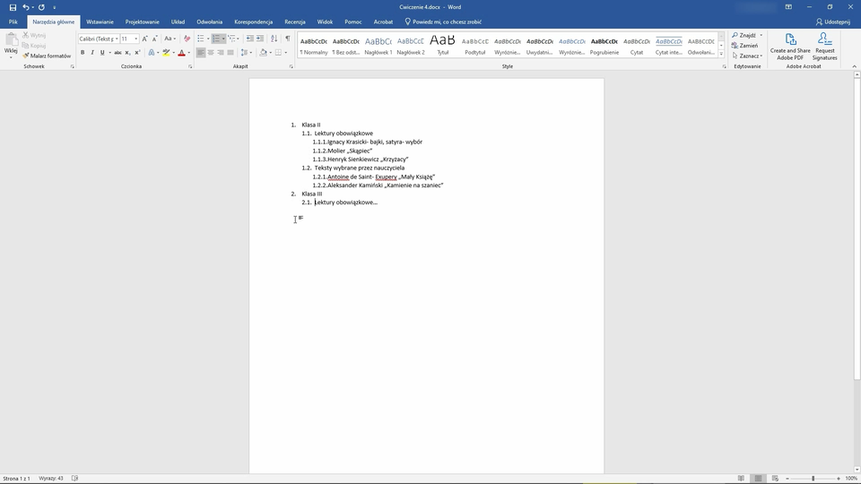 Tworząc listy wielopoziomowe, możesz przesuwać punkty na poziom wyższy lub niższy w zależności od potrzeb.