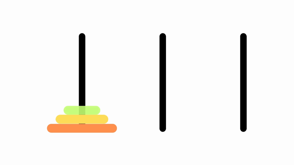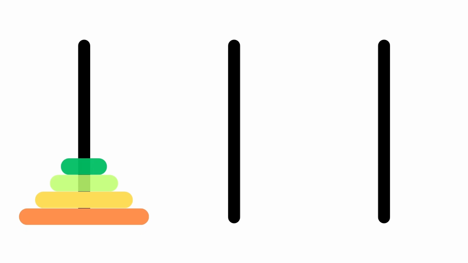 Dane są trzy słupki oraz zestaw krążków o różnych średnicach. Na początku wszystkie krążki są ułożone w stos na jednym słupku w kolejności malejącej, od największego na dole do najmniejszego na górze.