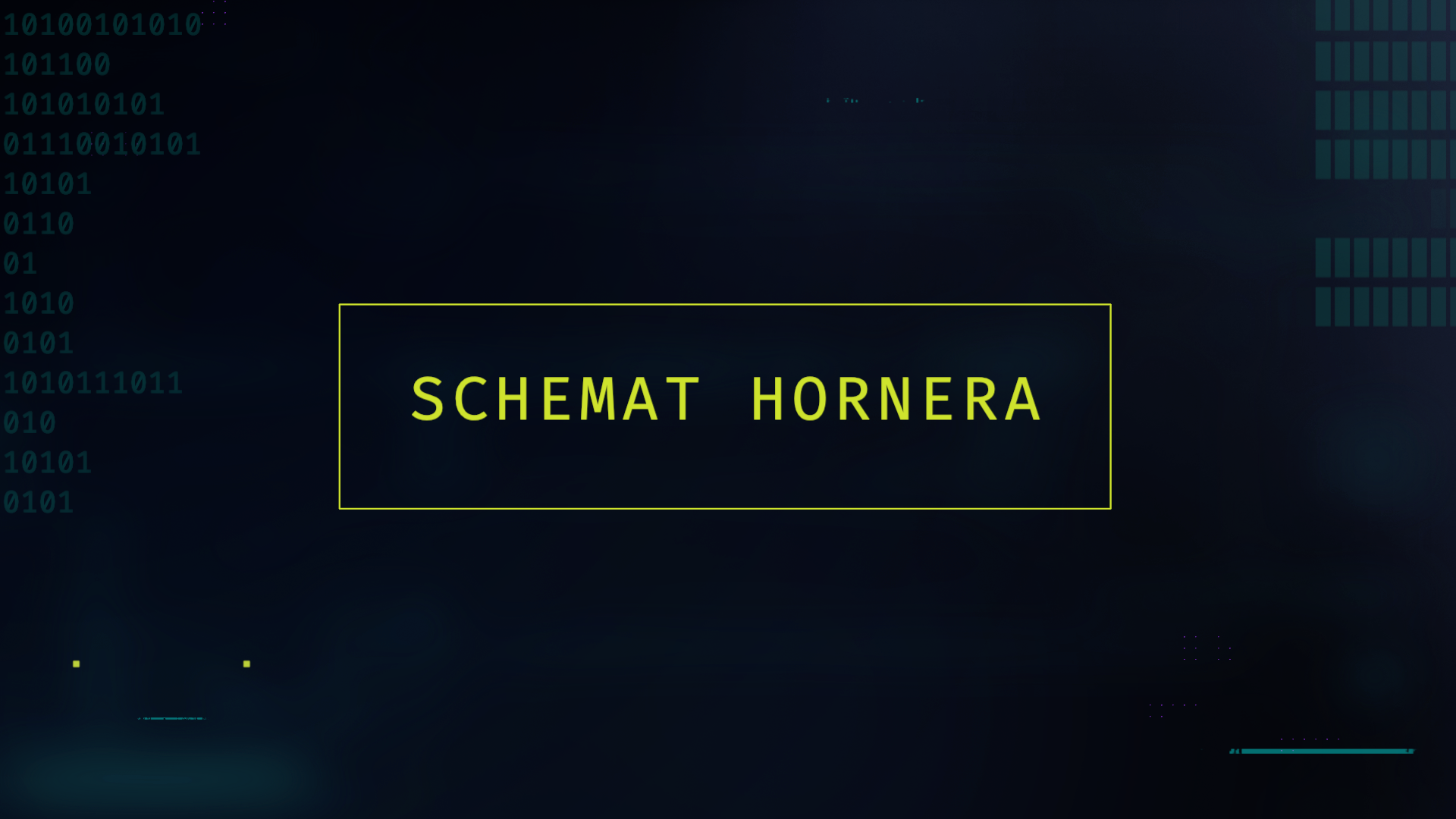 Obraz przedstawia wzór schematu Hornera zapisany na granatowym tle.