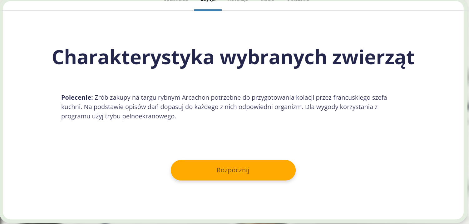 Zrób zakupy na targu rybnym Arcachon potrzebne do przygotowania kolacji przez francuskiego szefa kuchni. Na podstawie opisów dań dopasuj do każdego z nich odpowiedni organizm.