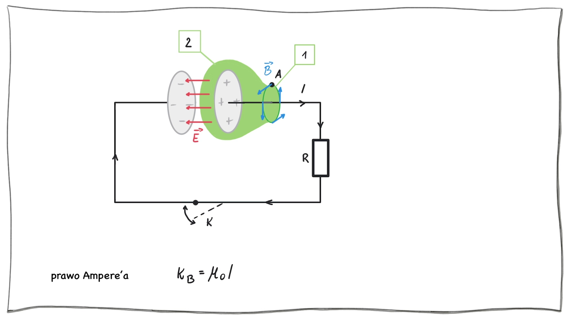 Zastanów się, jak byłoby zwrócone pole magnetyczne, gdyby kondensator był ładowany tak, aby dodatnia była lewa okładka.