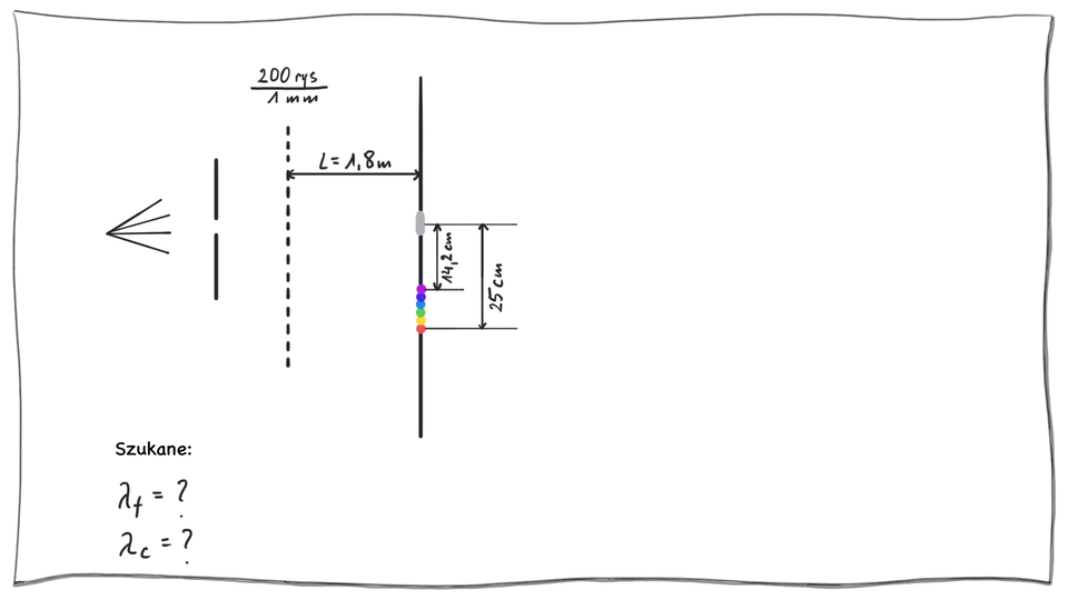 Film przedstawia rozwiązanie przykładowego zadania dotyczącego siatki dyfrakcyjnej.