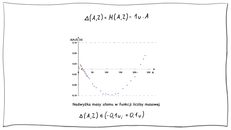 W filmie wyjaśnione jest pojęcie nadwyżki masy oraz pokazane jest, w jaki sposób masy atomów różnych pierwiastków są skatalogowane w tablicach masowych.