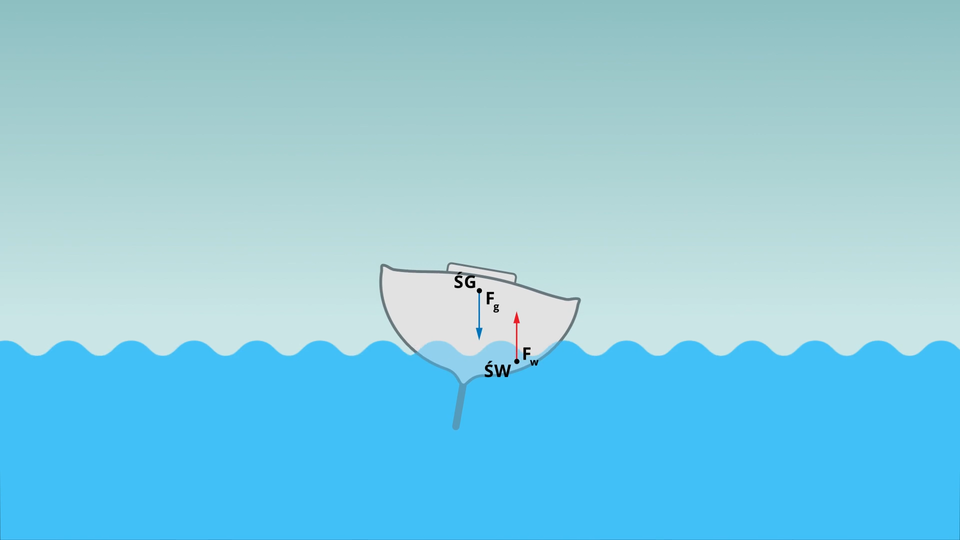 Animacja prezentuje zjawisko powstawania momentu prostującego podczas przechylania się łodzi.