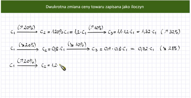 Często w sklepach widzimy informacje zawiadamiające o obniżkach, bądź podwyżkach cen towarów. Dobrze jest więc umieć obliczyć cenę towaru po zmianie.