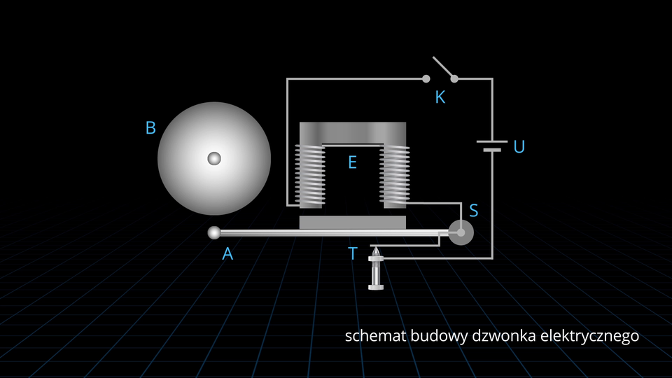 Obejrzyj animację i opisz własnymi słowami działanie dzwonka. Prześledź krok po kroku, co dzieje się w układzie od chwili zamknięcia klucza K. Czy zauważasz tu sprzężenie zwrotne?
