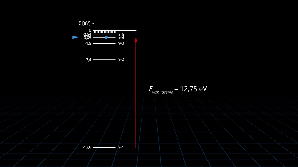 Dzięki poniższej animacji dowiesz się, jak wyglądają poziomy energetyczne w atomie wodoru, a także określisz wartości energii fotonów, które mogą zostać wyemitowane przez atom będący w stanie wzbudzonym.
