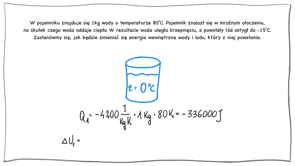 Rozwiążmy przykładowy problem dla wody stygnącej na mrozie i zamieniającej się w lód.