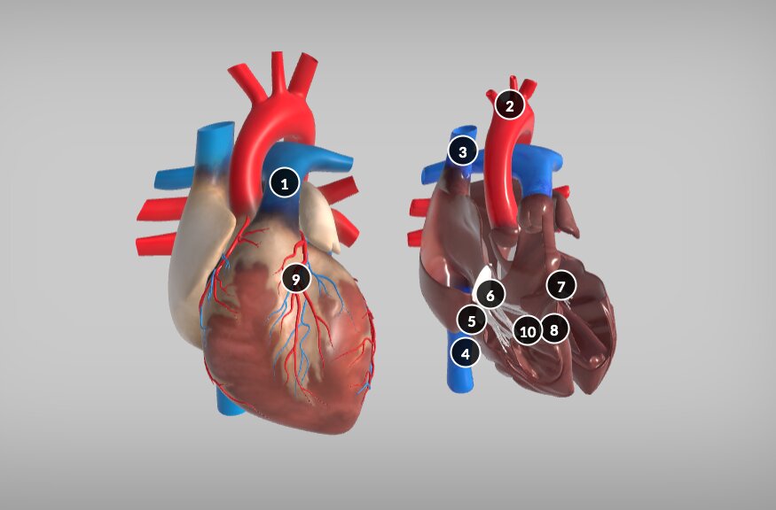 Przeanalizuj model 3D budowy serca, następnie rozwiąż polecenia.