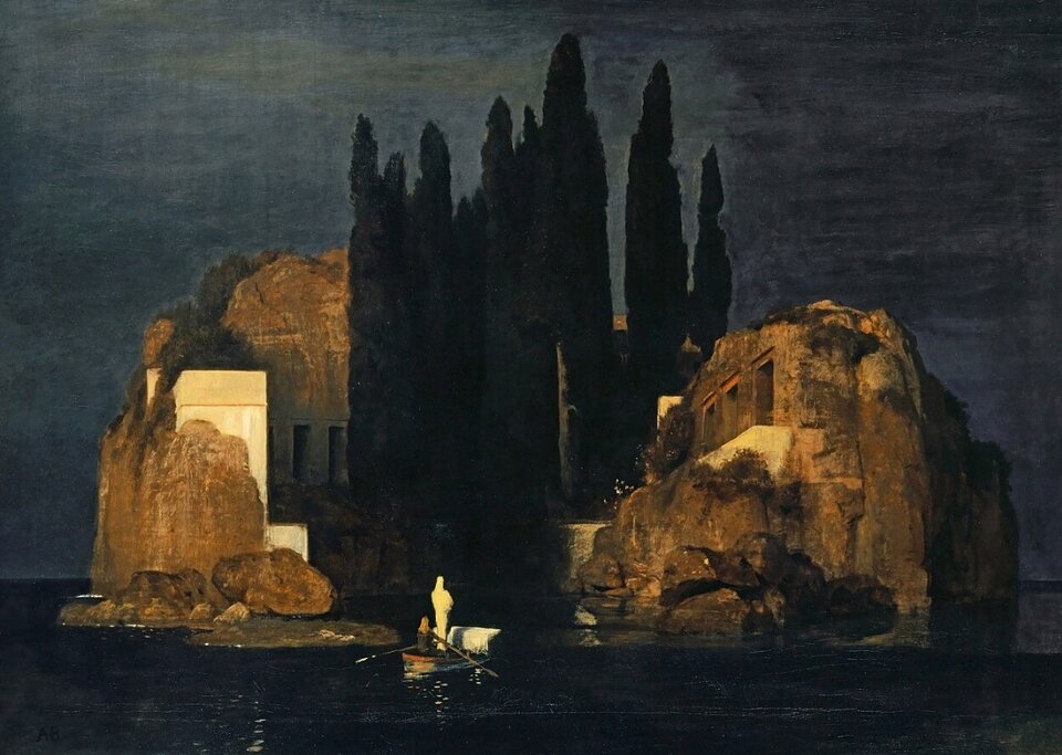 Źródło: Wyspa umarłych obraz Arnolda Böcklina., dostępny w internecie: https://pl.wikipedia.org/wiki/Wyspa_umar%C5%82ych_(obraz_Arnolda_B%C3%B6cklina).
