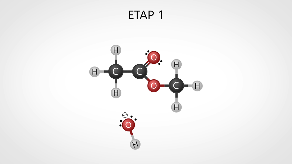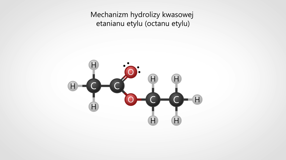 Tematem animacji jest mechanizm hydrolizy kwasowej estru.