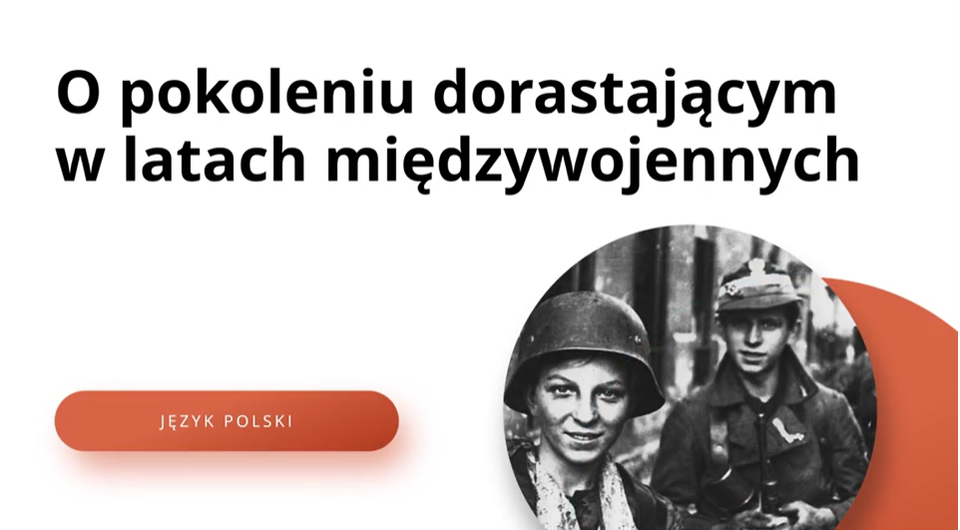 Film z audiodeskrypcją pt. „O pokoleniu dorastającym w latach międzywojennych”. Nagranie rozpoczyna plansza tytułowa. Następnie na ekranie pojawia się kobieta, która siedzi za biurkiem w lekko przyciemnionym pokoju. W filmie wyświetlane są również plansze z informacjami, grafikami, zdjęciami.