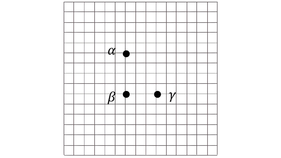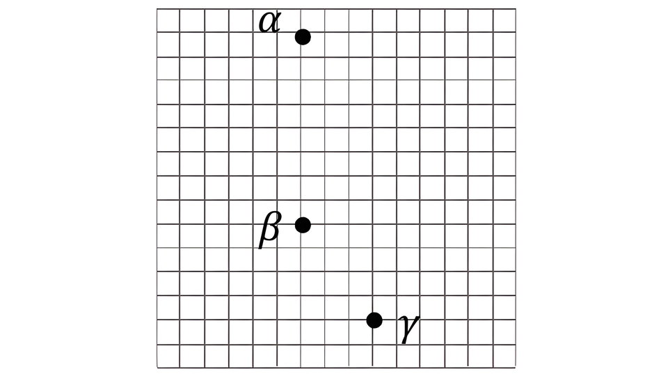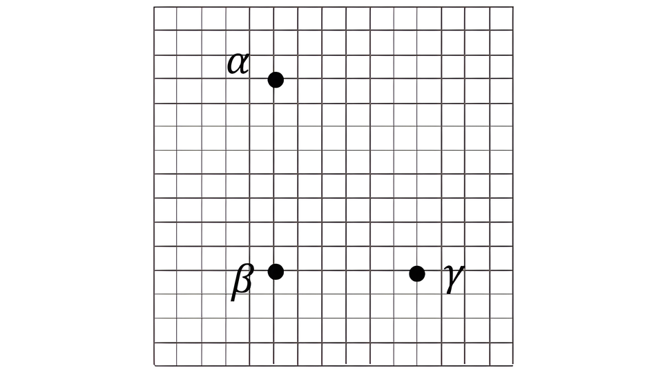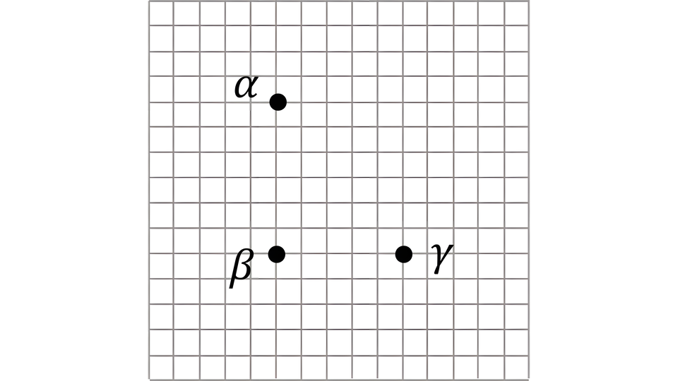Na płaszczyźnie rysunku naniesiono siatkę ukazującą stosunki odległości między galaktykami. Długość boku kratki odpowiada umownej jednostce odległości. Przyjmij, że prędkości względne tych galaktyk wynikają jedynie z rozszerzania się Wszechświata.