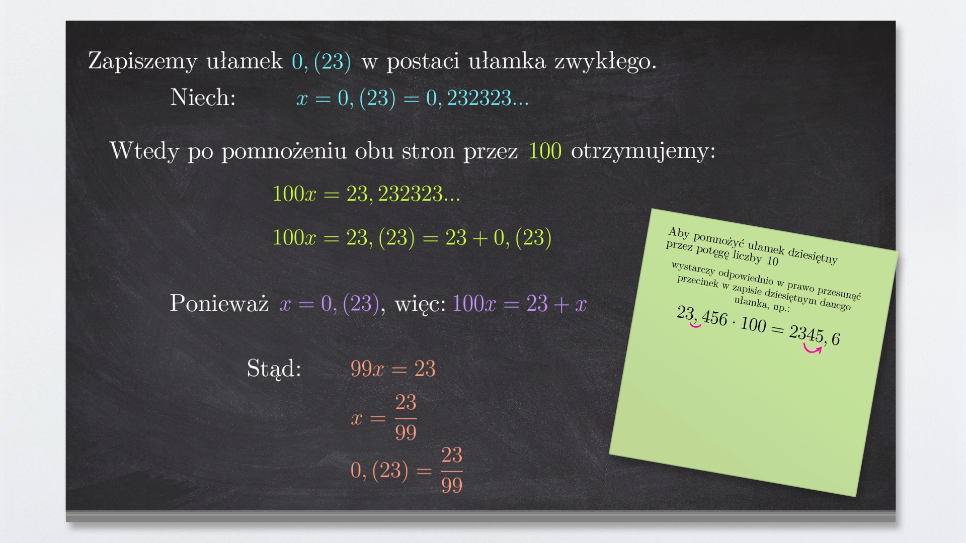 Zapiszemy ułamek w postaci ułamka zwykłego. Przyjmijmy, że . Wtedy: