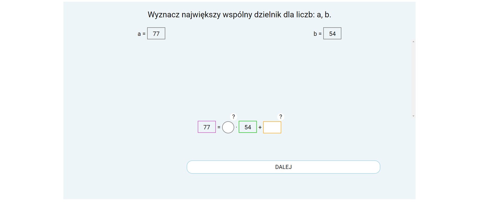 Wynik działania wraz z mniejszą liczbą tworzą nową parę: 12 i 6. Największy wspólny dzielnik się nie zmienił – wciąż wynosi on 6.