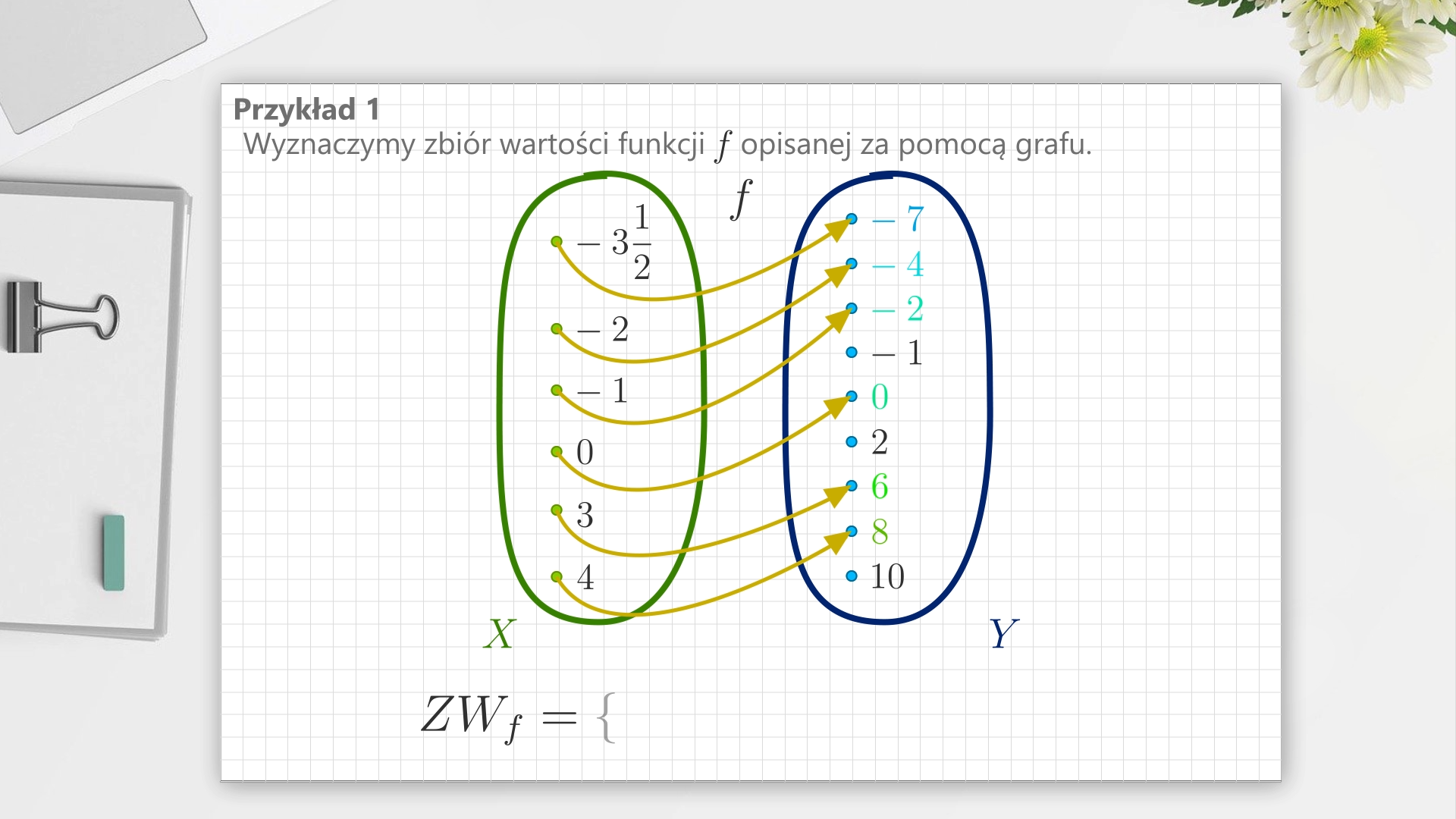Odczytywanie zbioru wartości funkcji określonej grafem, tabelą, zbiorem par uporządkowanych