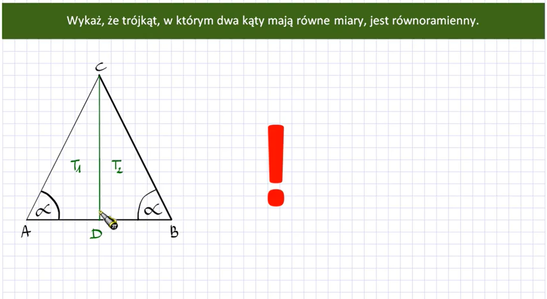 Udowodnij, nie korzystając z pojęcia pola, że jeśli dwie wysokości trójkąta są równe, to trójkąt ten jest równoramienny.