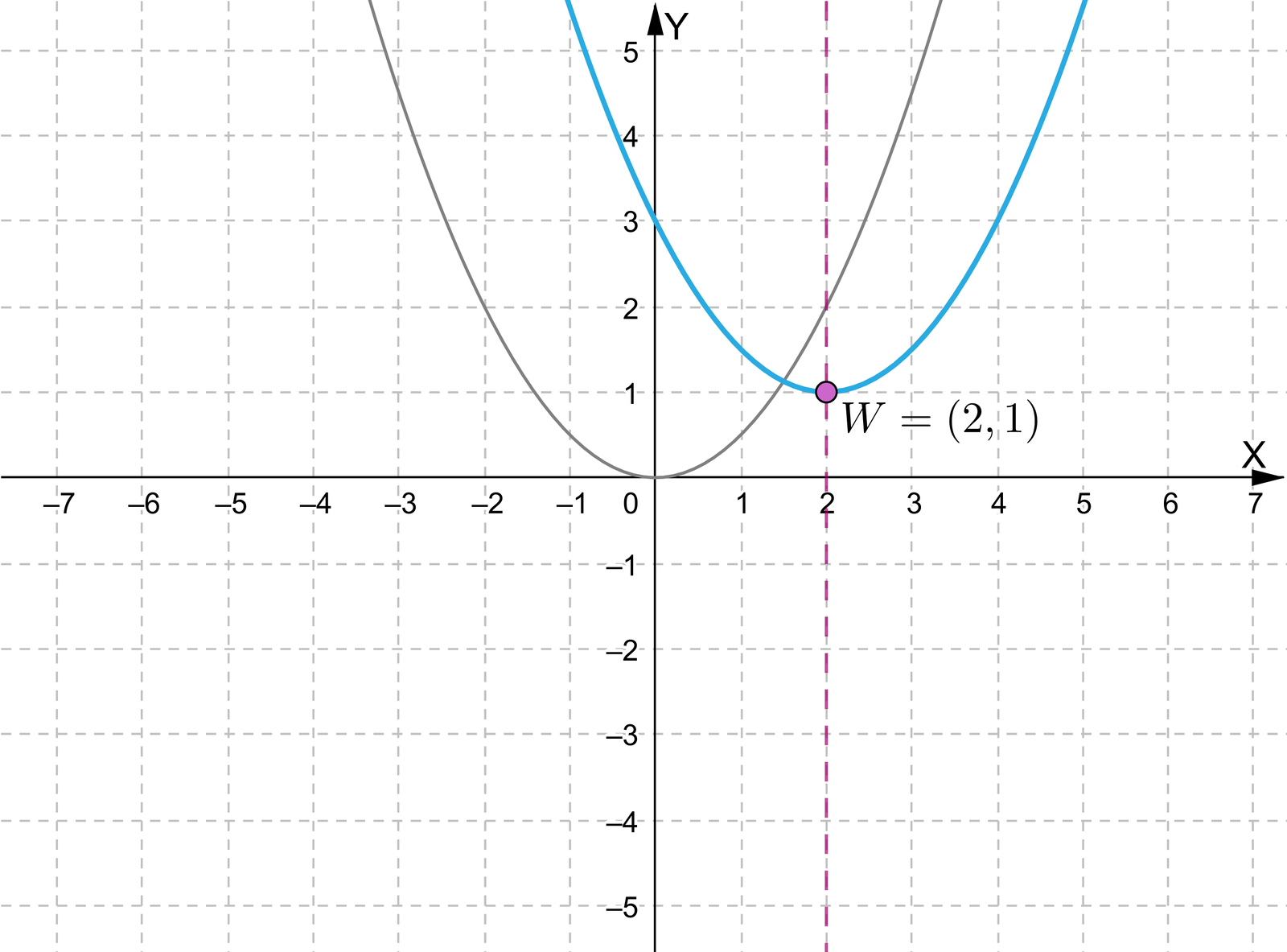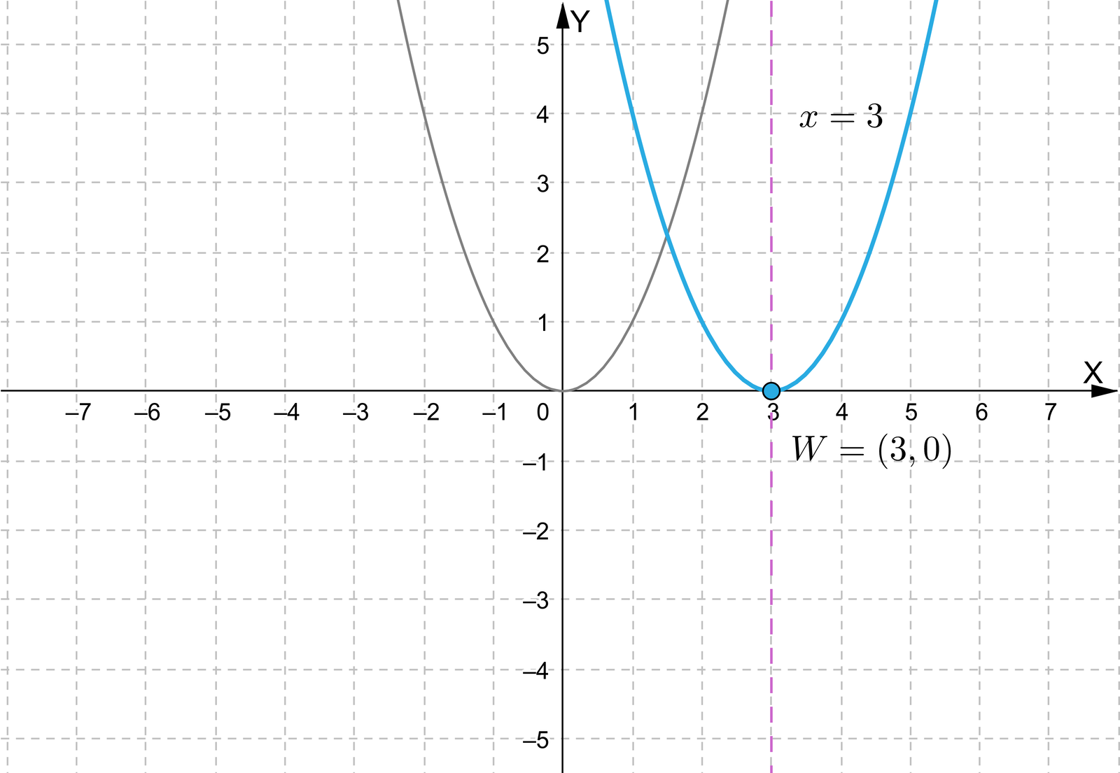 Przesuńmy parabolę, będącą wykresem funkcji o jednostki w prawo, wzdłuż osi . W ten sposób otrzymujemy parabolę, będącą wykresem funkcji .