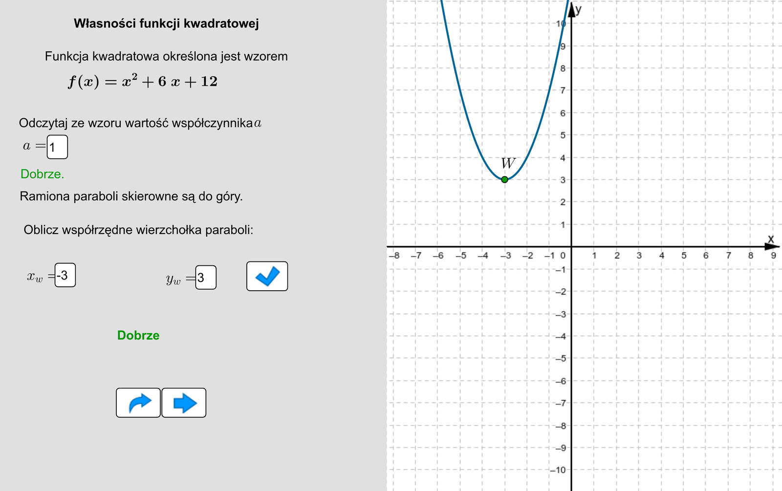Obliczysz współrzędne wierzchołka paraboli, która jest wykresem funkcji kwadratowej.