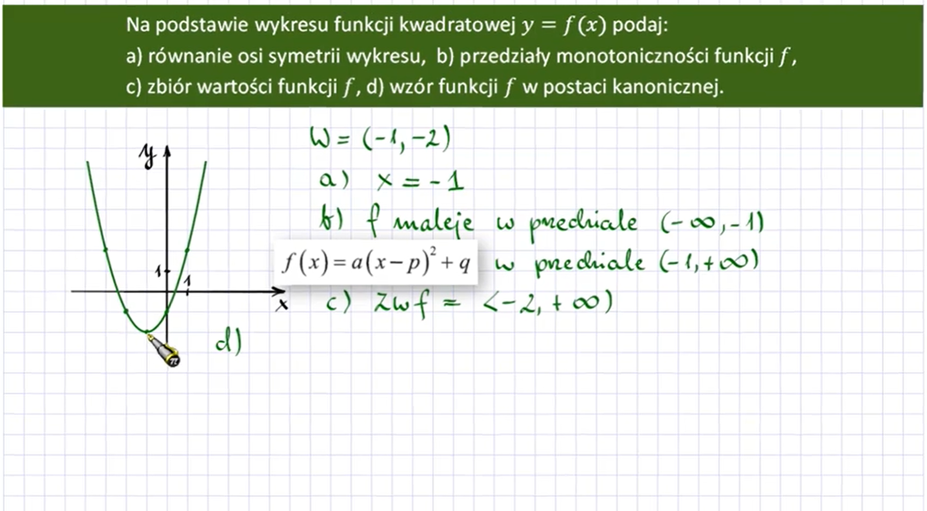 Zapisujemy teraz wzór tej funkcji w postaci kanonicznej: