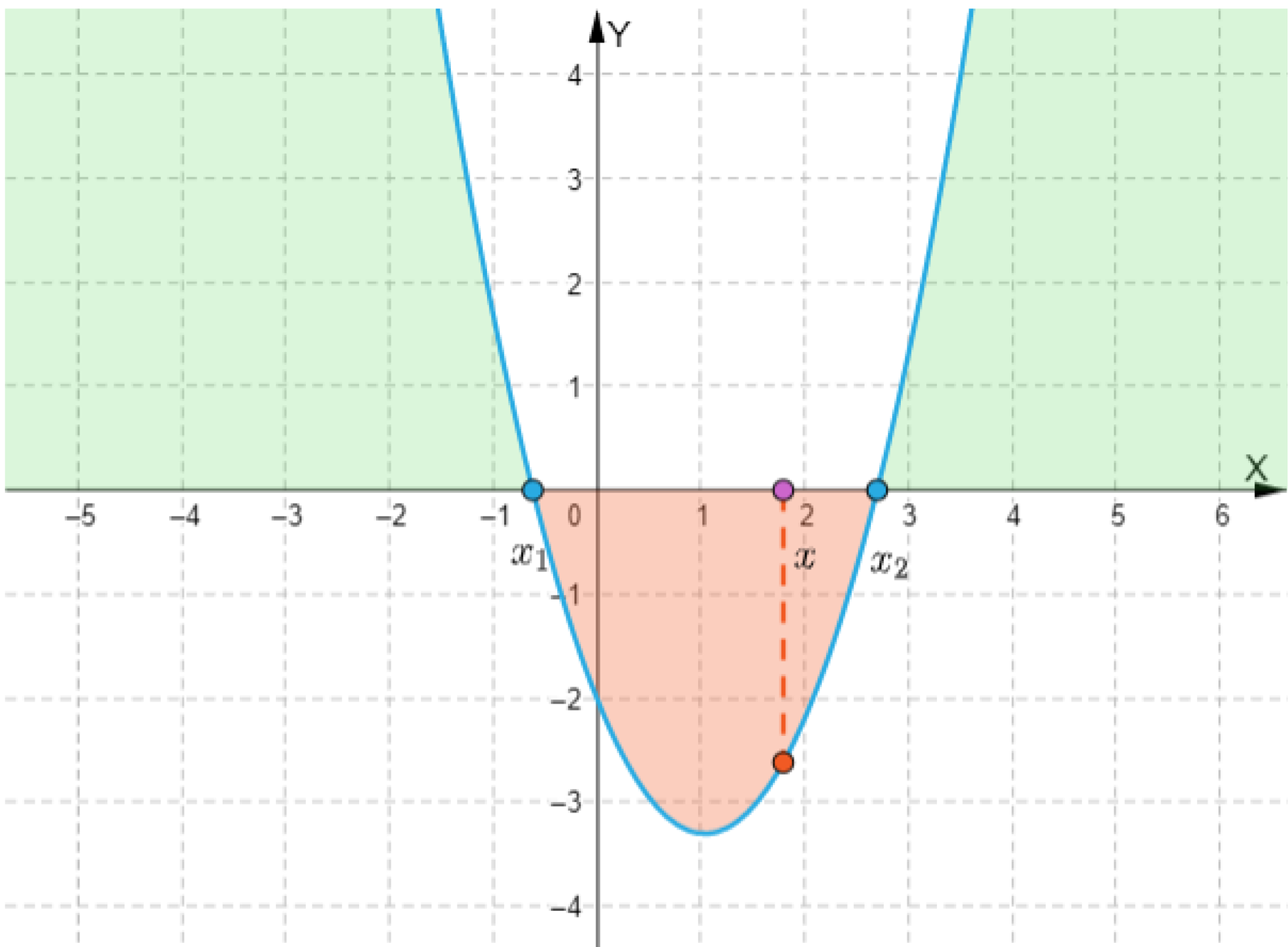 Podczas rozwiązywania nierówności kwadratowej pomocne jest odczytywanie z wykresu, dla jakich argumentów odpowiednia funkcja kwadratowa przyjmuje wartości ujemne, dodatnie, nieujemne lub niedodatnie.