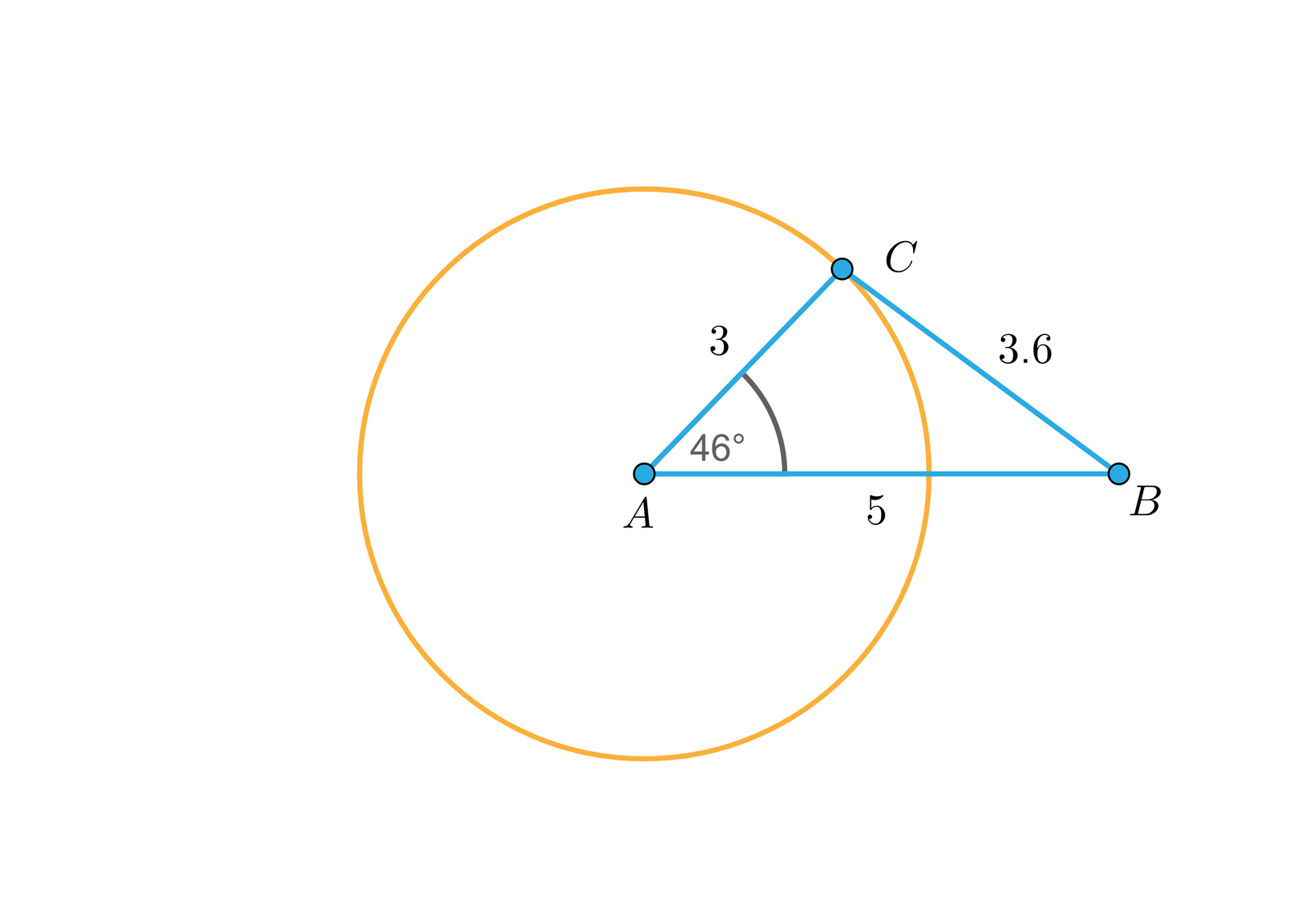Zakładamy, że długości boków trójkąta wynoszą , , oraz . Wtedy .