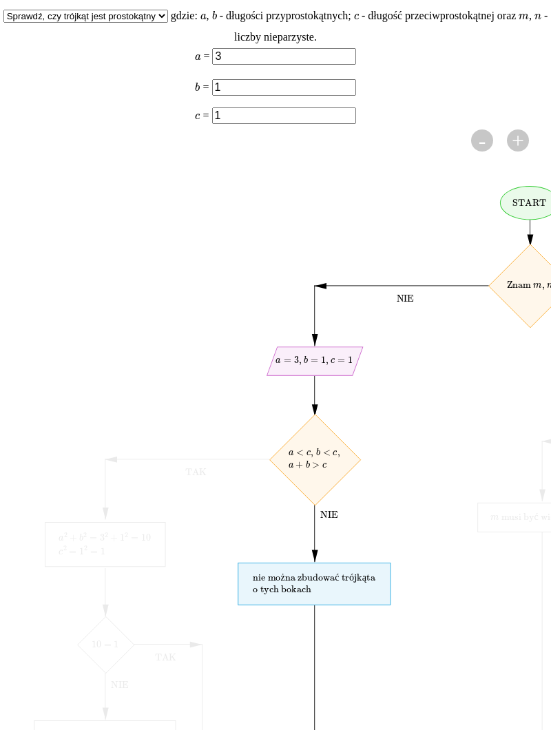 W schemacie interaktywnym masz możliwość sprawdzenia, czy trójkąt jest prostokątny lub wygenerowania trójki pitagorejskej.