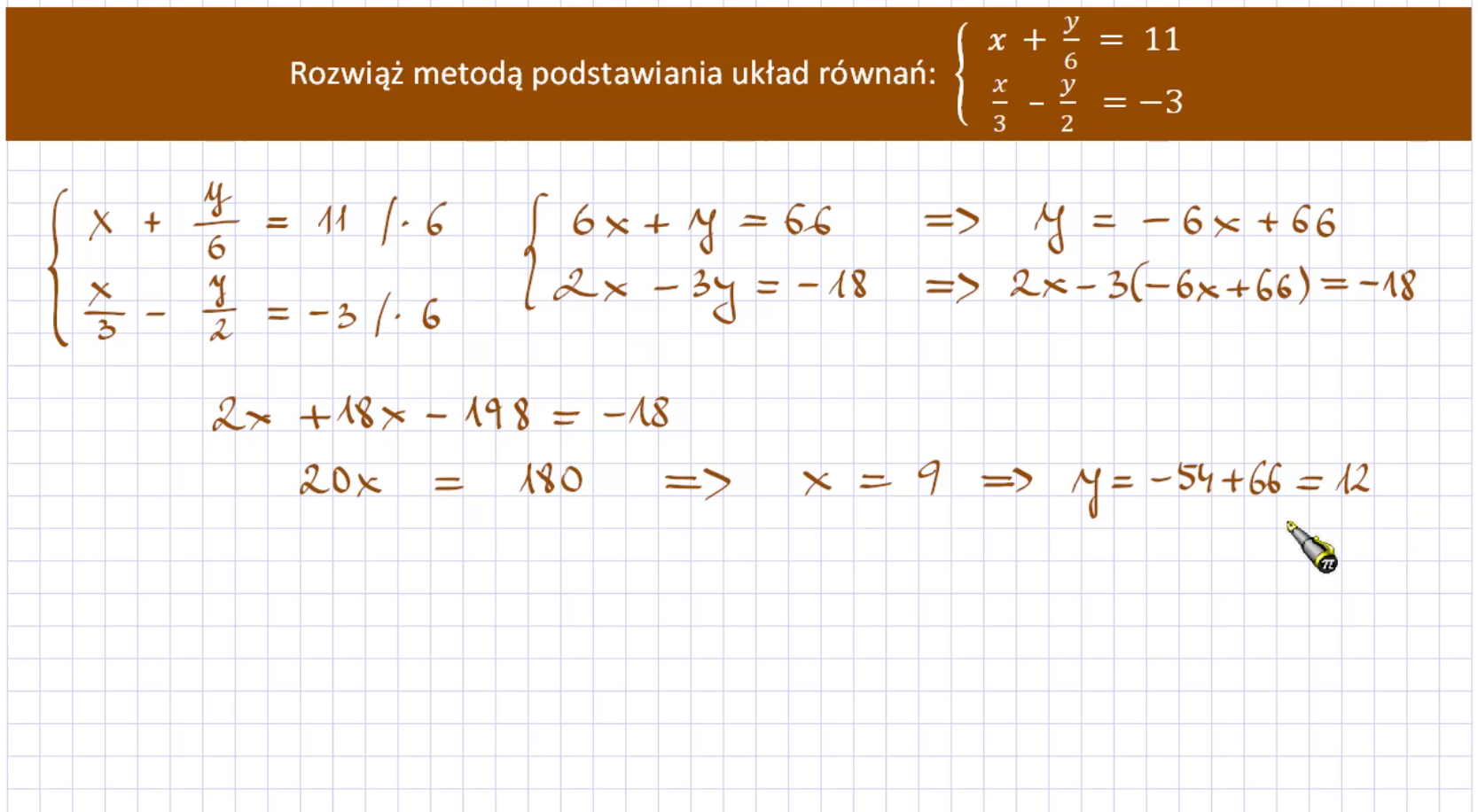 (Moglibyśmy też wyznaczyć z drugiego równania. Spróbuj samodzielnie rozwiązać układ w ten sposób).