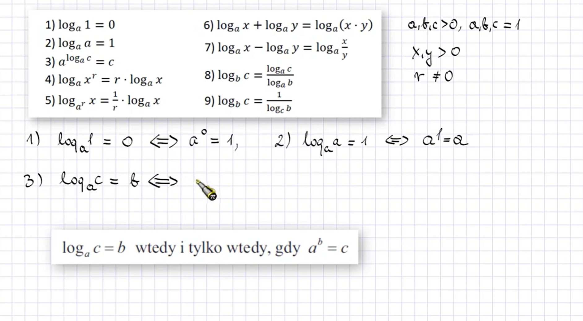 Na początek przypomnijmy definicję logarytmu.
