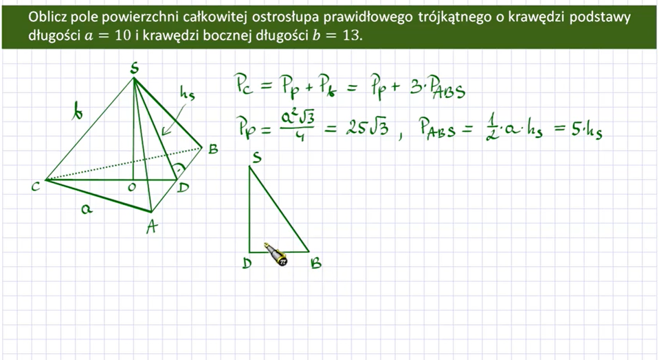 Film nawiązujący do treści materiału dotyczącego pola powierzchni ostrosłupa trójkątnego.