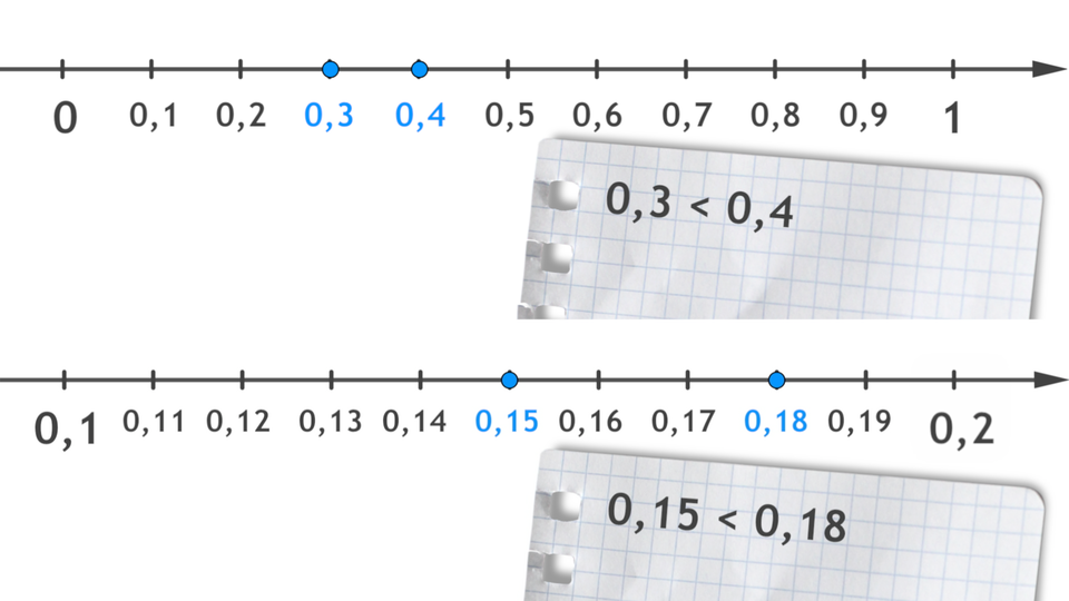 Porównywanie ułamków dziesiętnych zaczynamy od porównania cyfr występujących w ich najwyższych rzędach. Jeżeli cyfry występujące w rzędach całkowitych są równe, należy porównywać cyfry w rzędach części dziesiątych, setnych, tysięcznych itd., aż do rzędu, w którym w jednym z ułamków pojawi się cyfra większa niż w drugim.