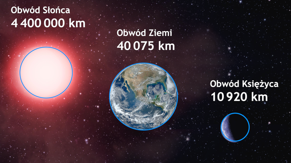 Filmik, w którym porównywane są obwody Słońca, Księżyca i Ziemi.