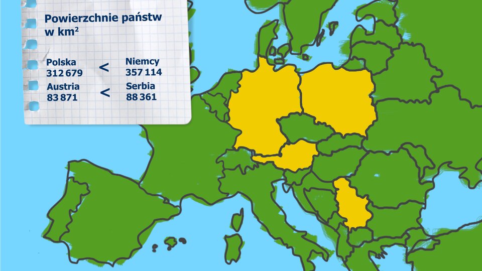 Jeśli chcemy porównać dwie wielkości mianowane, trzeba zwrócić uwagę, aby były zapisane za pomocą tej samej jednostki. W rozważanym przypadku w kilometrach kwadratowych.
