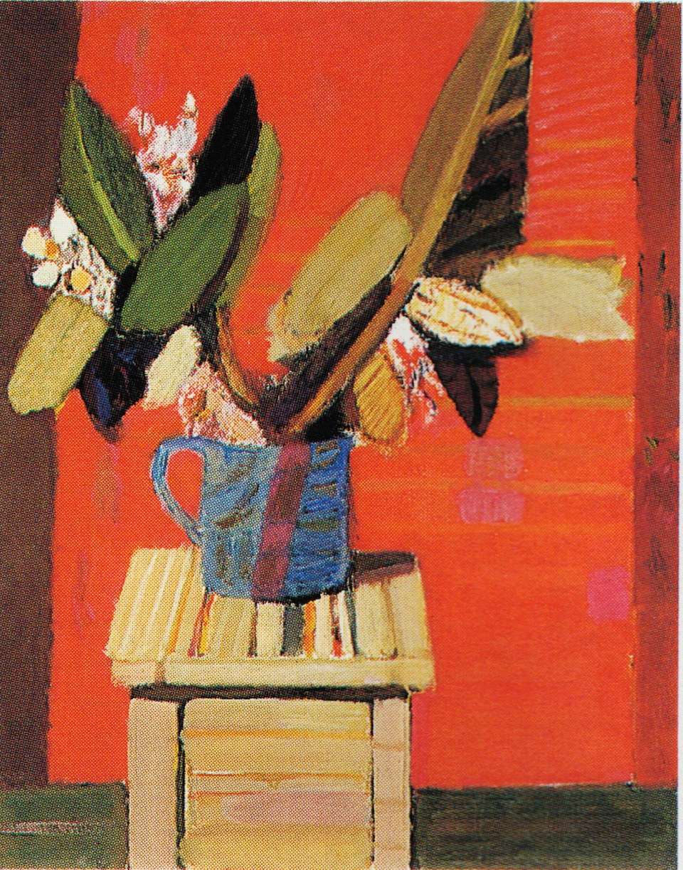 Często pojawiającym się tematem płócien malarza są martwe naturyzwłaszcza palmy i fikusy ustawiane w glinianych dzbanach, wazonach, garnkach i tworzące zwarte kompozycje, których sztywne, rozczapierzone liście wypełniają przestrzeń. Czasem malarz pozwala sobie na odważny kontrast barwny - cynober tła, szafirową kotarę, wielobarwny deseń naczynia, ale zawsze dominuje zieleń liści, zielona podłoga, krzesło, dzban czy wazon. W delikatnych zestawieniach tonalnych, bogactwie faktur i zróżnicowanym dukcie pędzla ujawnia się pełnia jego kolorystycznego kunsztu. Barwy są najczęściej matowe, zabielane.