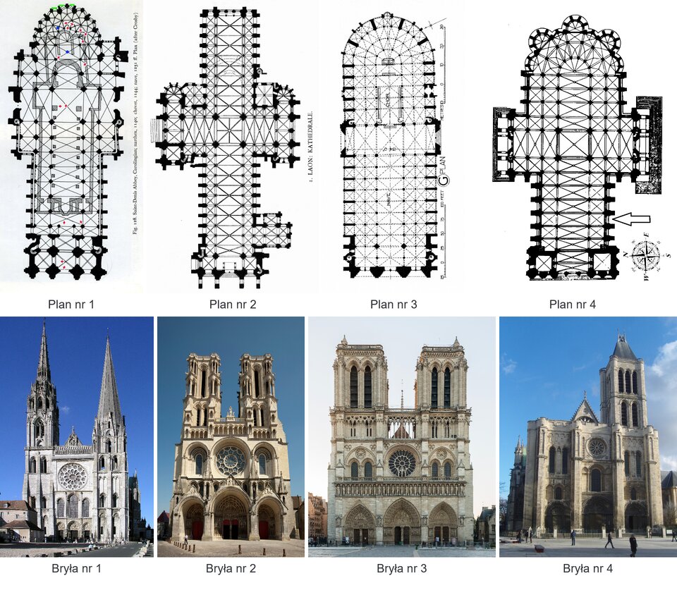 Porównaj rozwiązania architektoniczne zastosowane w katedrach Saint‑Denis i Laon. Wskaż podobieństwa i różnice w konstrukcji i układzie przestrzennym.