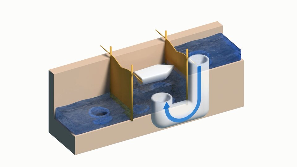 Jak działa taka śluza? Dzięki prawu naczyń połączonych jesteśmy w stanie wyrównać poziom wody między zbiornikiem a odcinkiem między wrotami śluzy. Gdy ten poziom zostanie wyrównany, możemy otworzyć pierwsze wrota i wpłynąć do obszaru wyrównawczego, po czym musimy je zamknąć. W obszarze wyrównawczym – ponownie dzięki zasadzie działania naczyń połączonych – poziom wody zostaje dopasowany do poziomu, jaki panuje po drugiej stronie śluzy. Możemy teraz bezpiecznie otworzyć drugie wrota i odpłynąć.