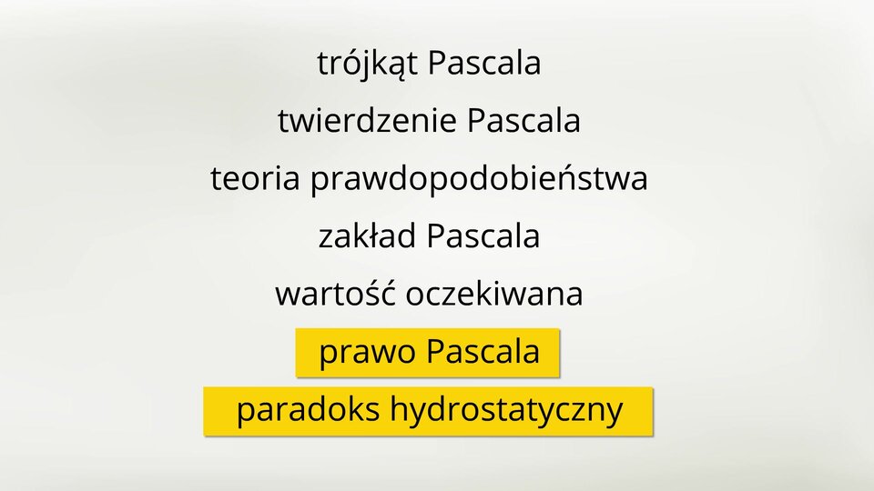 [blez paskal] Wybitny francuski matematyk, fizyk i filozof. Twórca wielu teorii matematycznych, konstruktor pascaliny – pierwszej maszyny liczącej, która potrafiła sumować. Prowadził badania dotyczące ciśnienia. Od nazwiska tego uczonego pochodzi nazwa jednostki ciśnienia w układzie SI – paskal ().