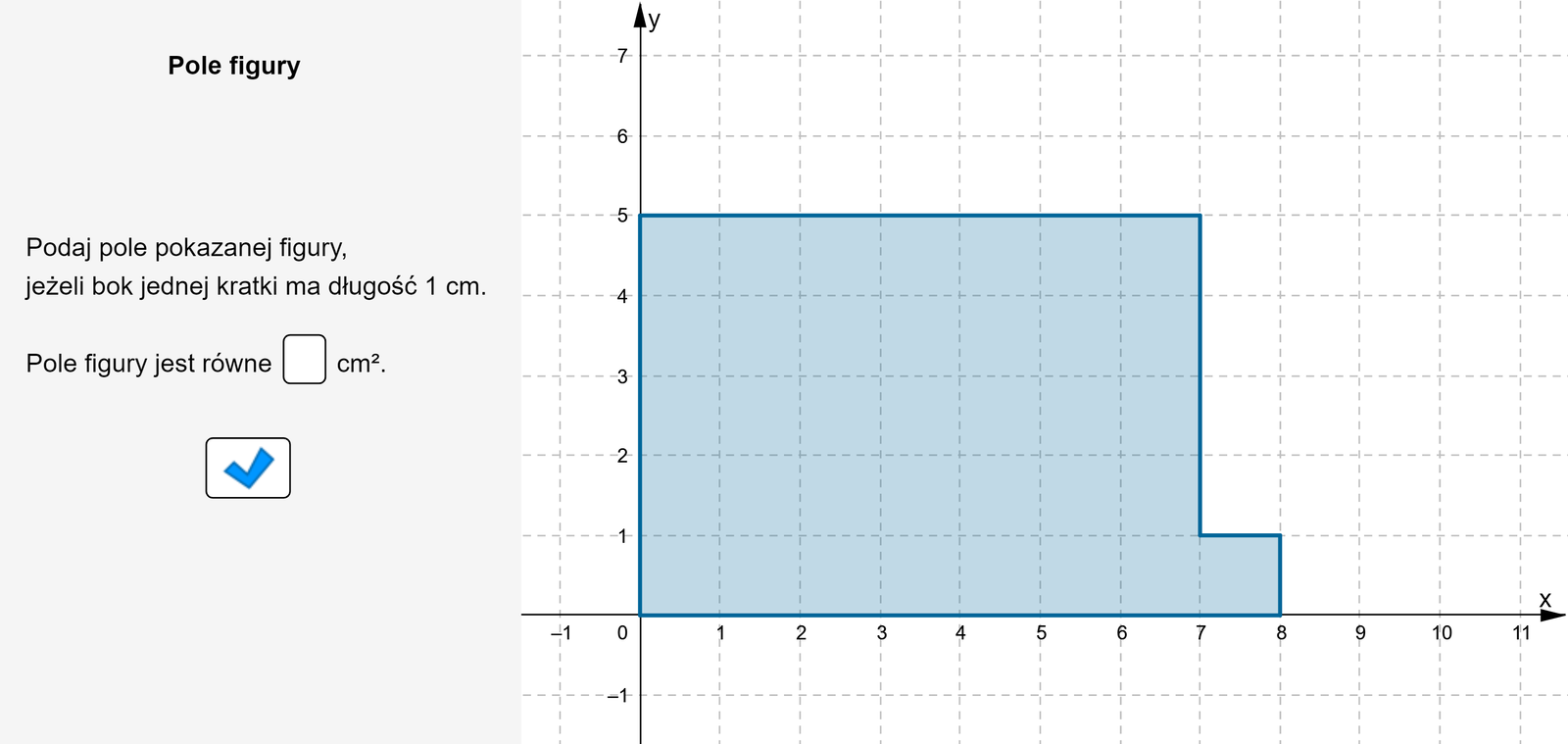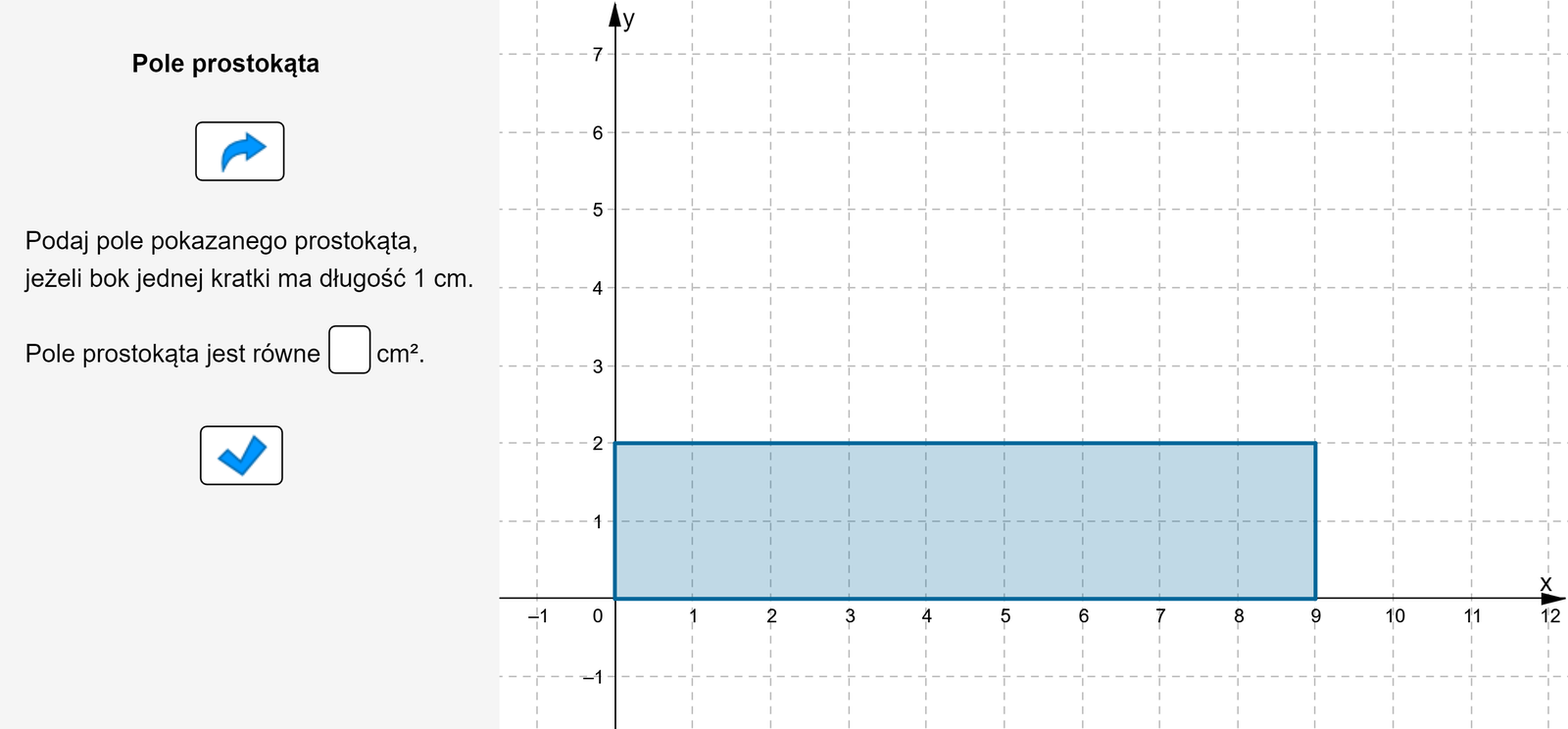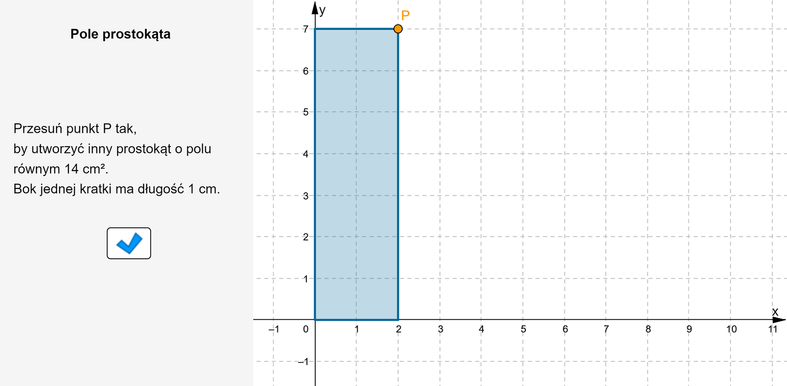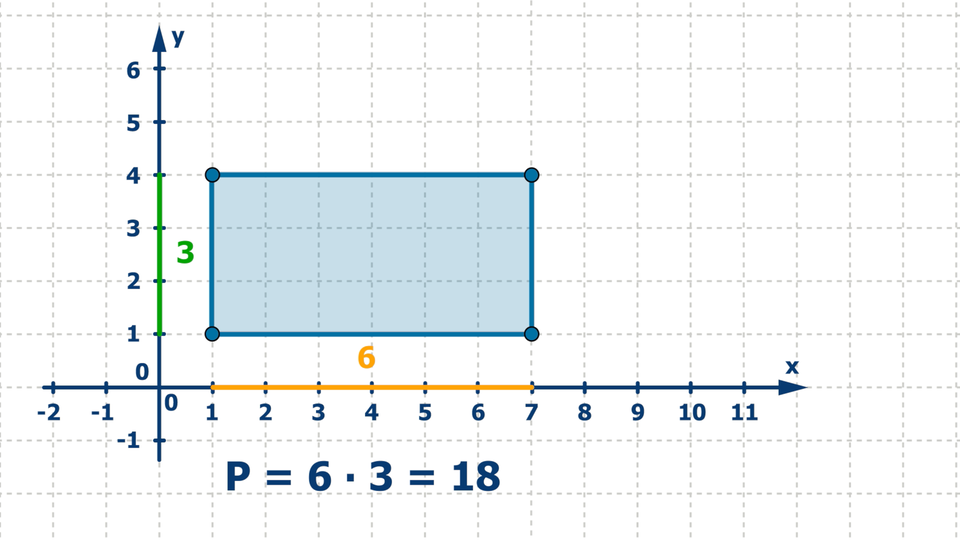 Animacja przedstawia w jaki sposób możemy obliczyć pole prostokąta umieszczonego w układzie współrzędnych.