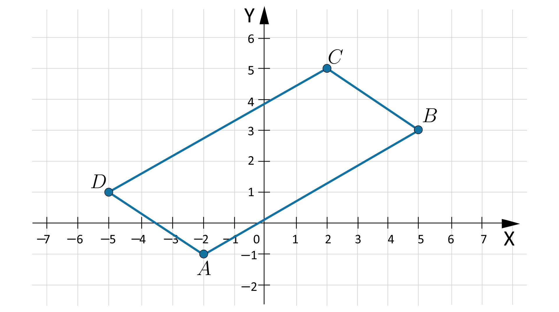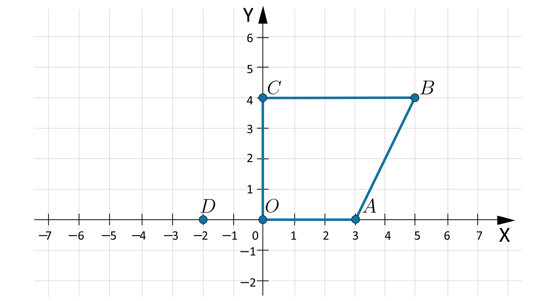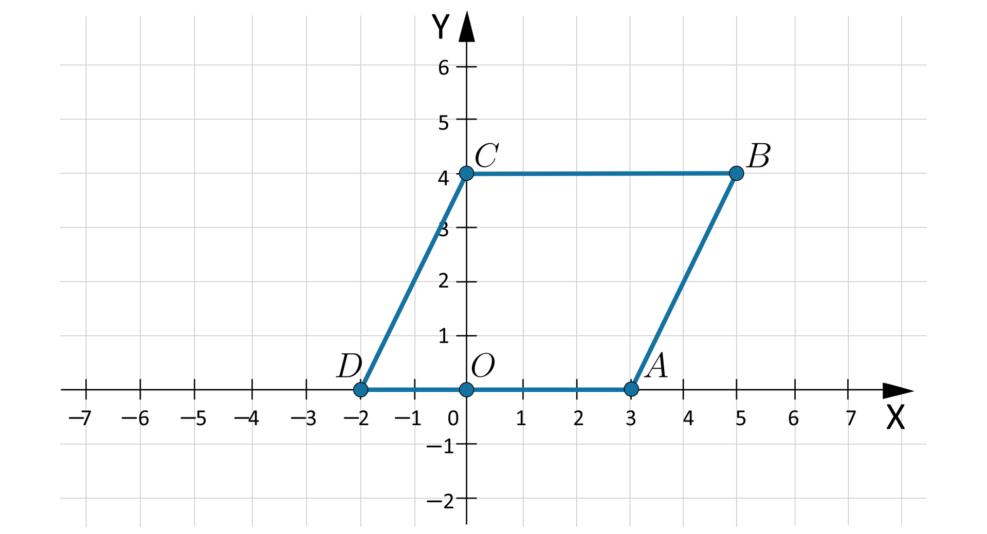 W układzie współrzędnych umieszczono równoległobok, tak jak na rysunku.