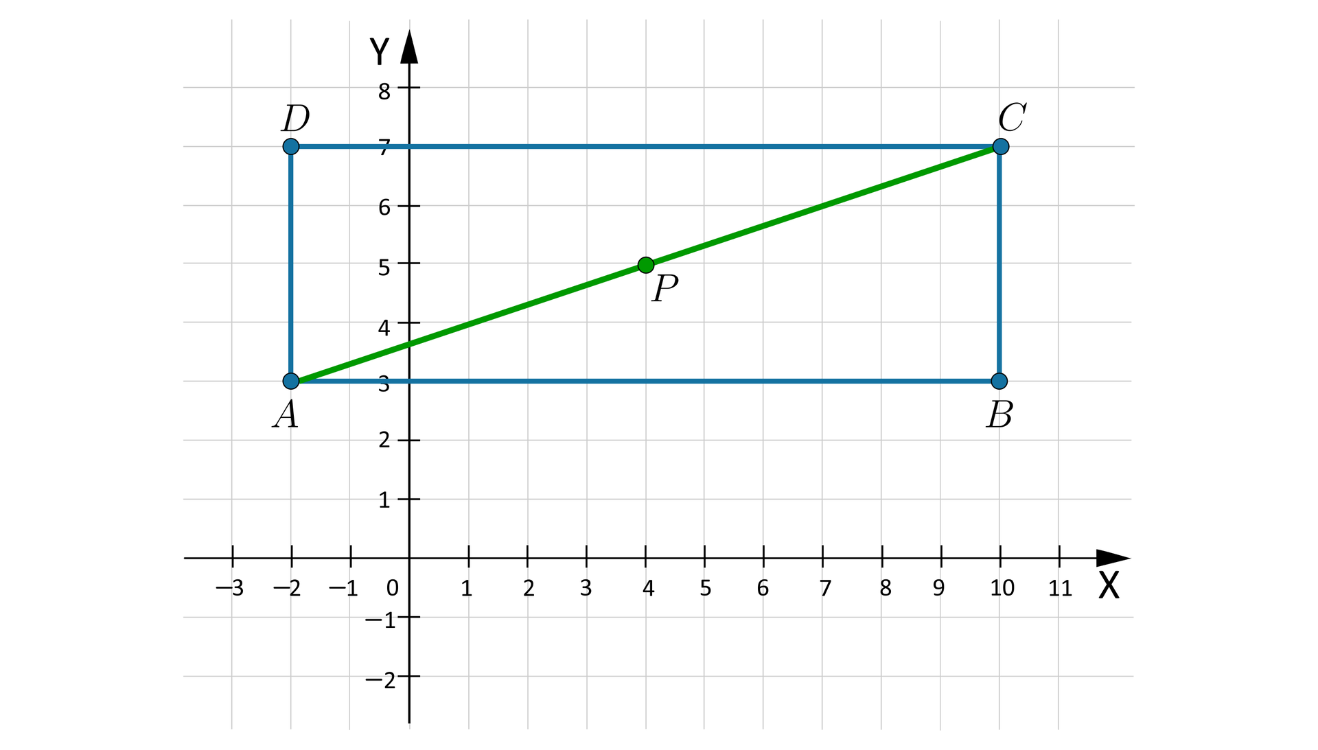 Narysuj w układzie współrzędnych prostokąt, którego przekątne przecinają się w punkcie i jeden z jego wierzchołków ma współrzędne , a drugi z jego wierzchołków ma współrzędnie . Odczytaj współrzędne wierzchołków tego prostokąta.