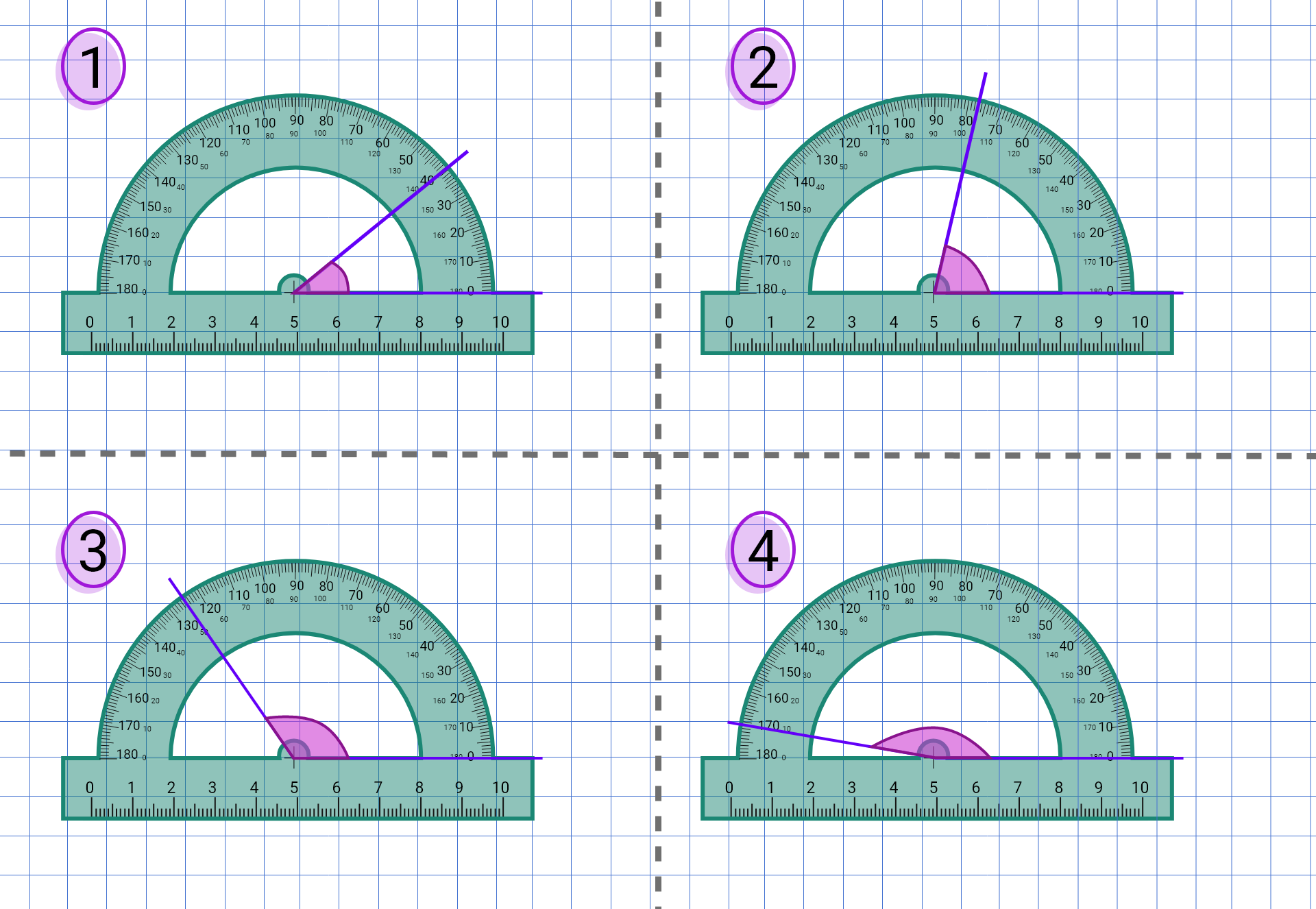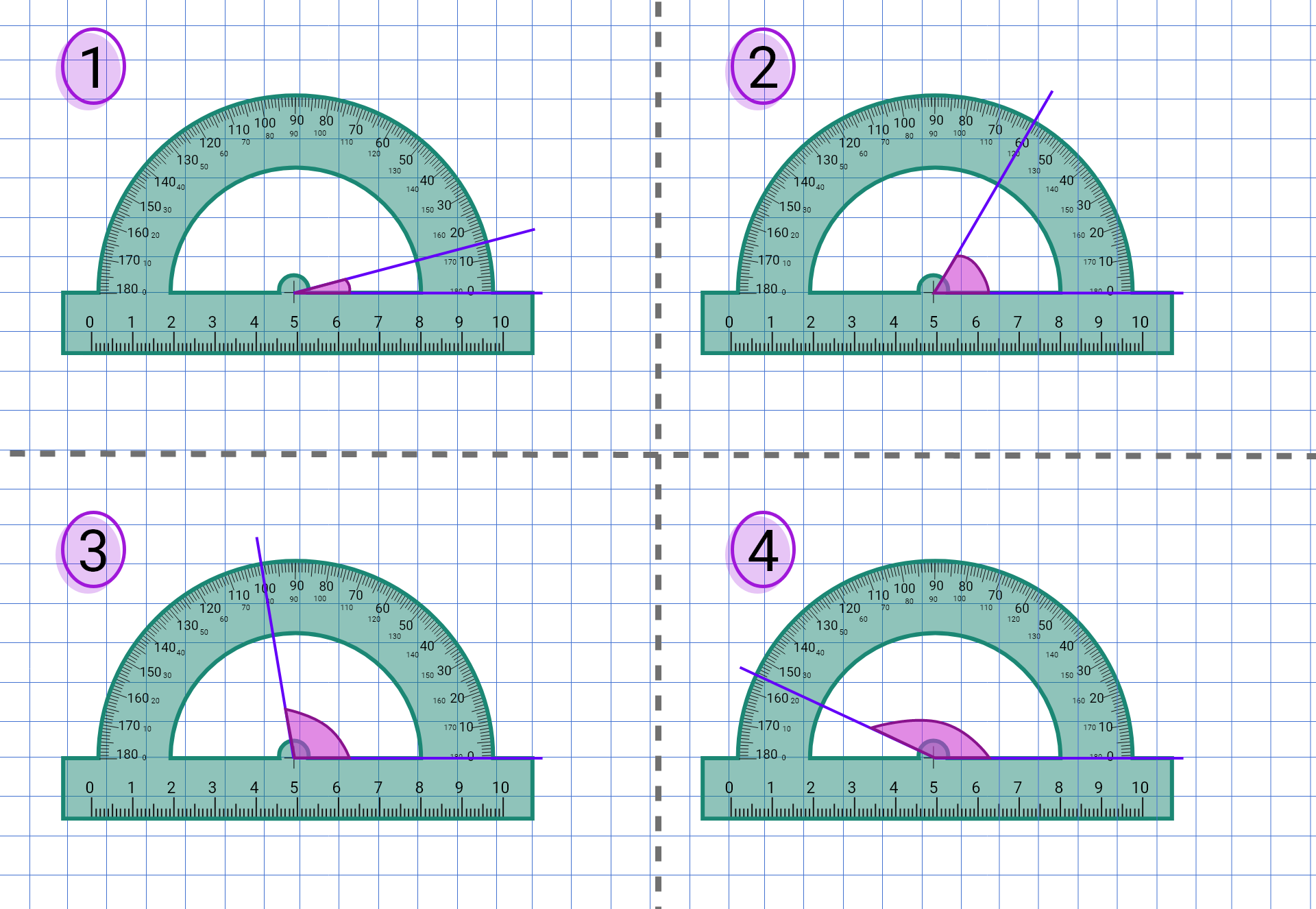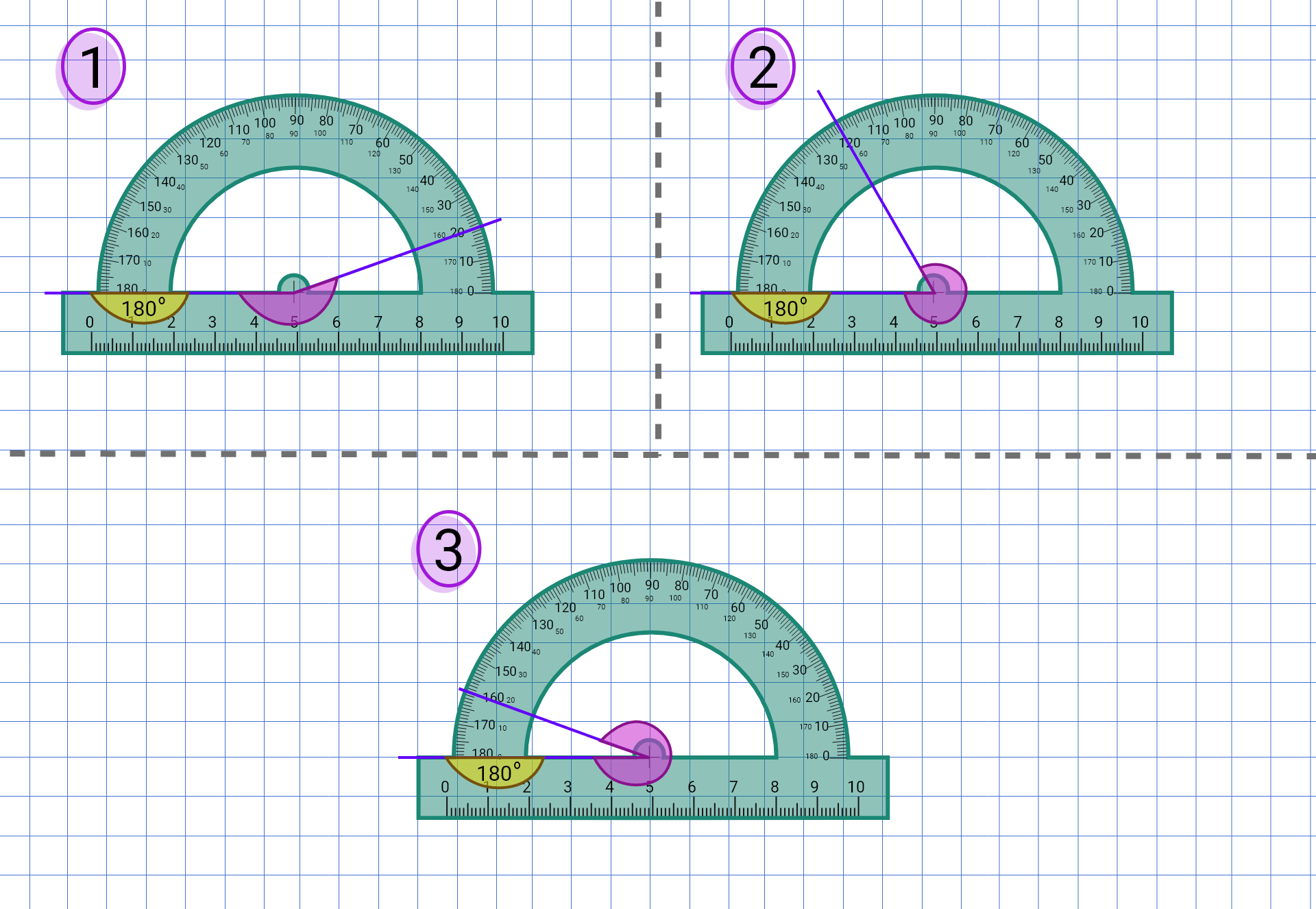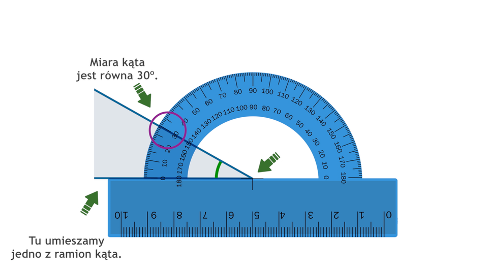 Animacja pokazuje, w jaki sposób mierzyć kąty za pomocą kątomierza.