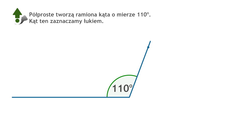 Animacja pokazuje, w jaki sposób narysować kąt o mierze 110° za pomocą kątomierza.