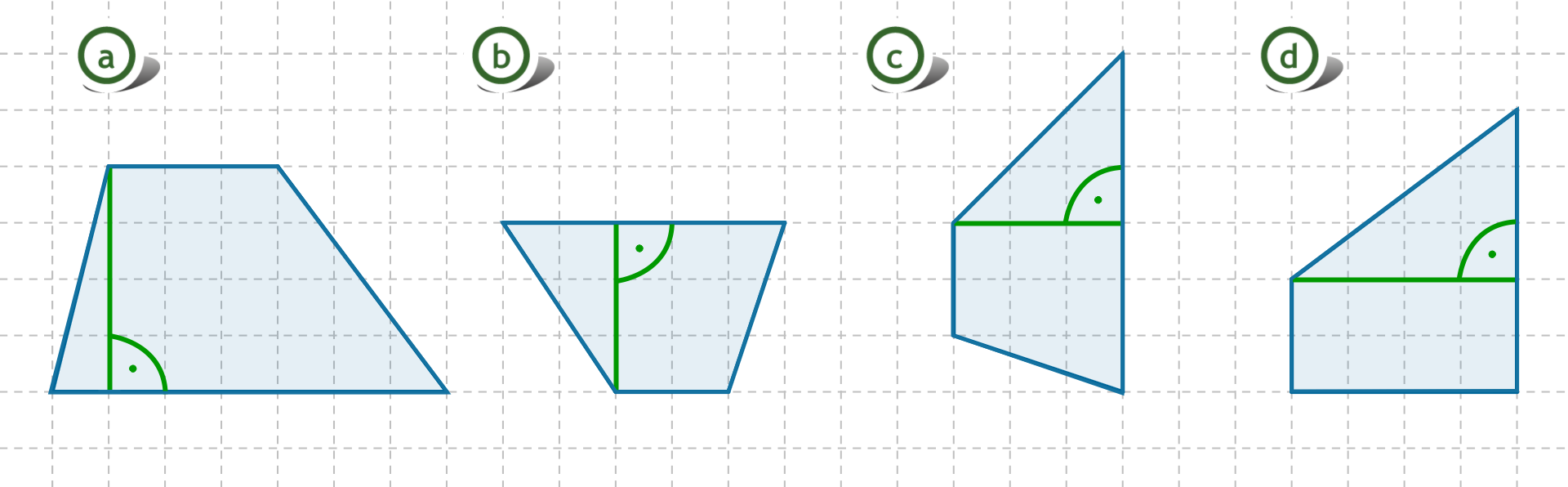Zastanów się, które boki poniższych trapezów połączy jego wysokość.
