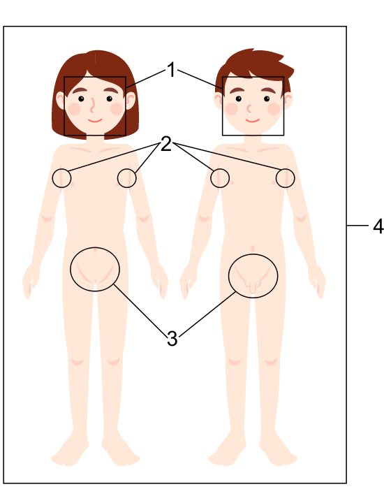 Nazwij wskazane na rysunkach miejsca na ciele chłopca, które ulegają przemianom w okresie dojrzewania.