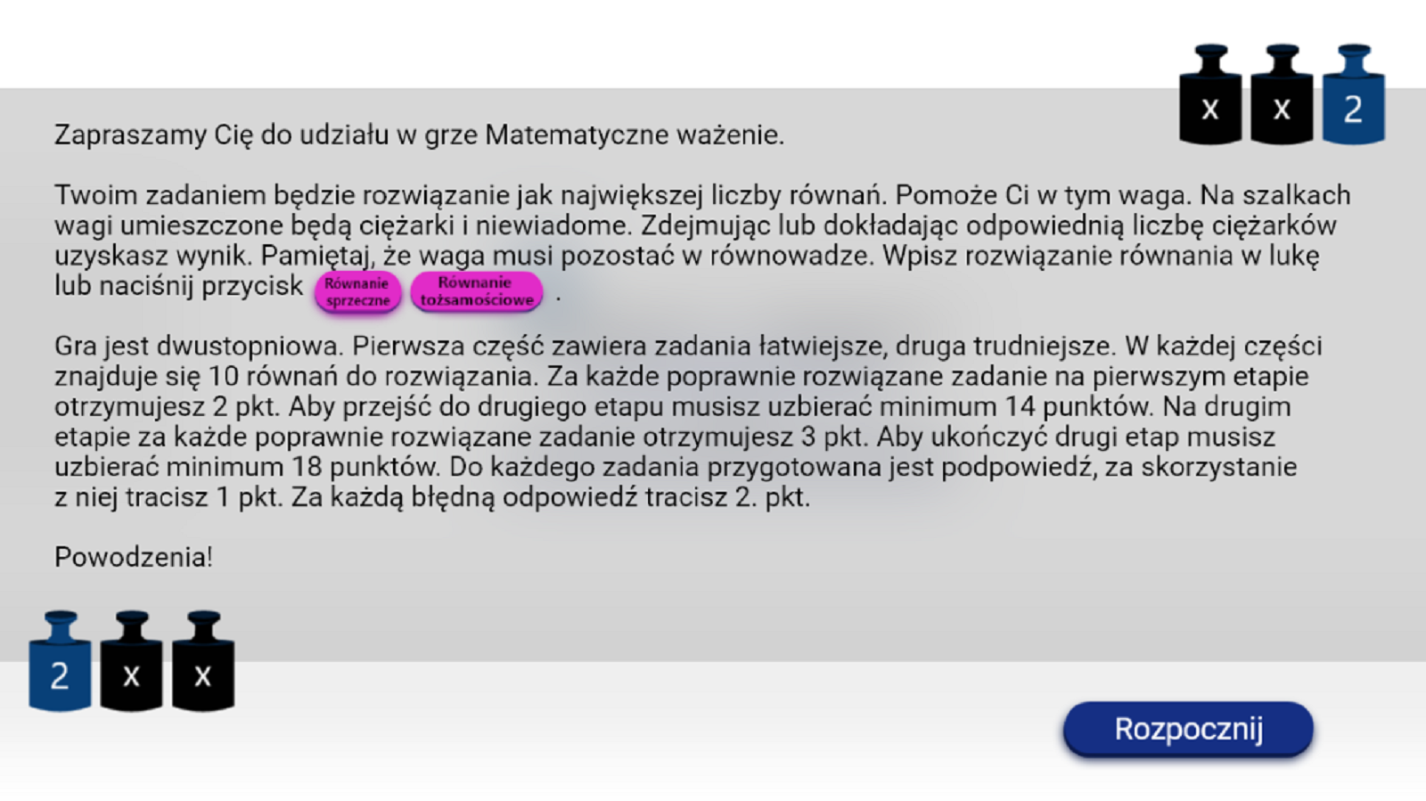 Do zilustrowania rozwiązania równania można wykorzystać wagi.