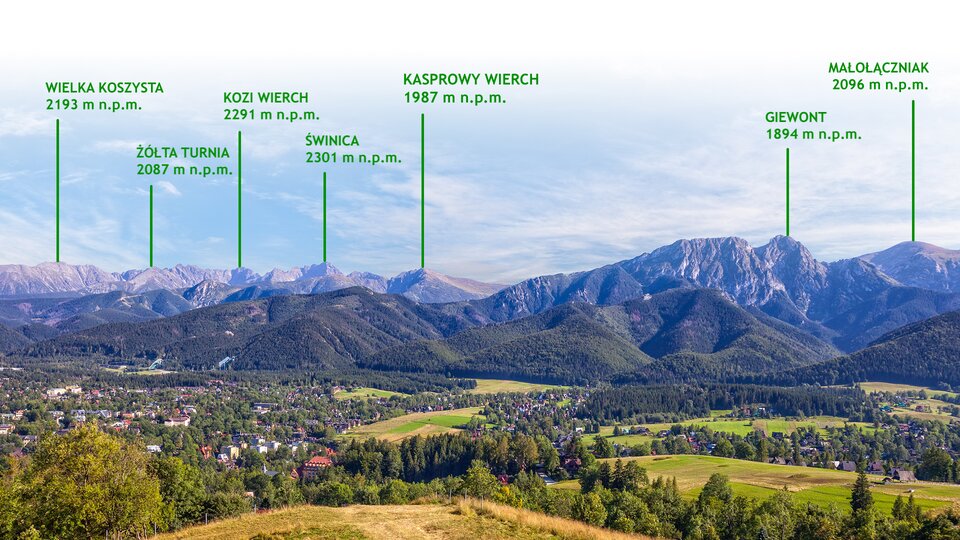 Zapoznaj się z wysokościami siedmiu szczytów w polskich Tatrach (wzniesienie nad poziom morza podane jest w metrach).