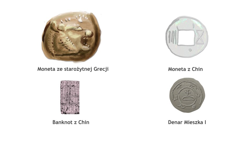 Zapoznaj się z poniższą animacją, która przedstawia monety i banknoty z różnych rejonów i wieków.